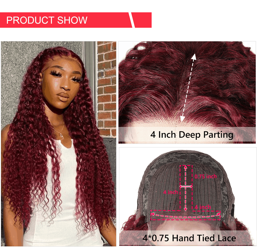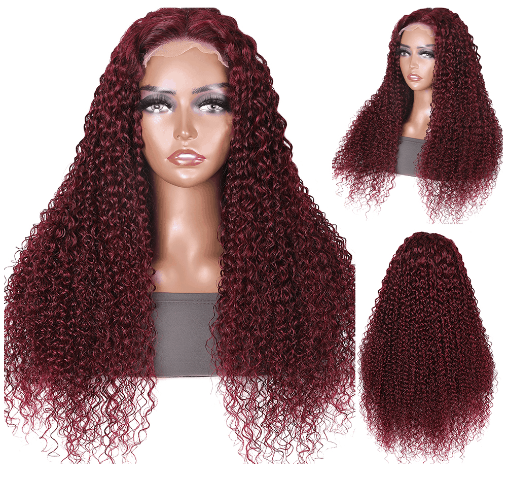Incolorwig New Fashion #99J Burgundy Jerry Curly Wigs 4x0.75 Lace Part Wig In Great Demand 150% Density Curly Hair Wig Middle Part Wig Wholesale Price