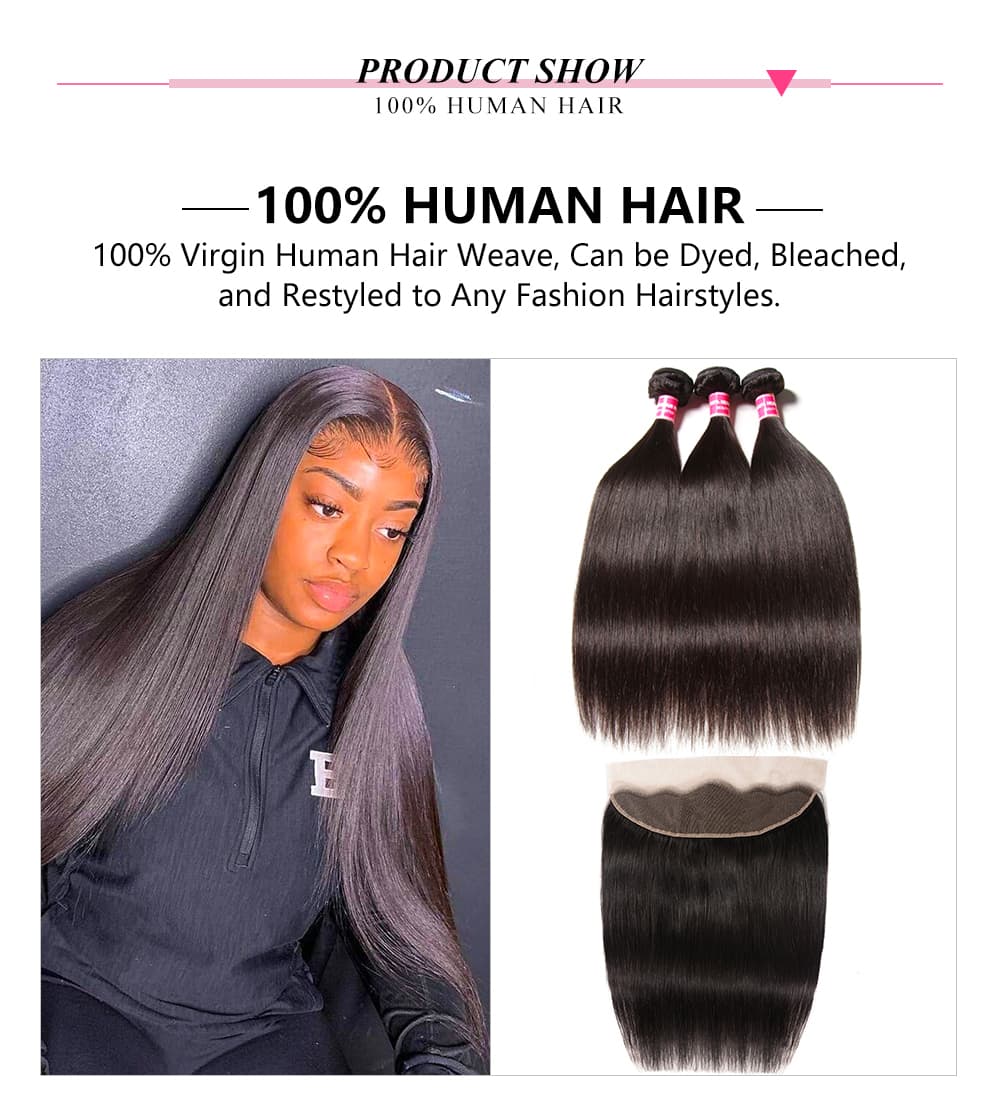 Incolorwig 100% Virgin Human Hair Long Silky Straight Hair Weaves 3 Bundles With 13*4 Lace Frontal Closure 8-30 Inch Virgin Human Hair Bundles With 10-20 Inch Lace Frontal