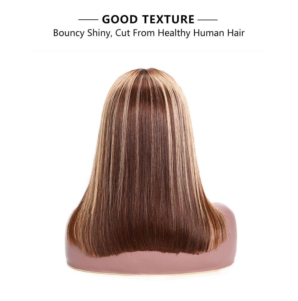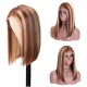Incolorwig Brown With Blonde Highlights Frontal Wig Free Part Pre Colored Ombre Pre Plucked Bob Wig 150% Density