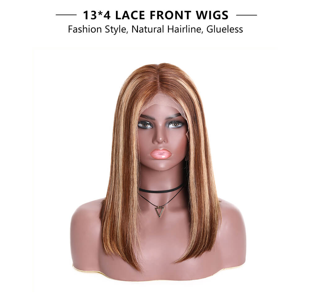 Incolorwig 13x4 Highlight Straight Bob Lace Front Human Hair Wigs 150% Density Ombre Color Pre Plucked With Baby Hair Lace Frontal Wigs For Black Women