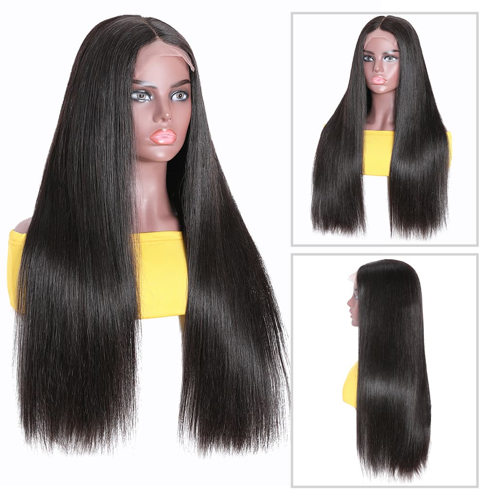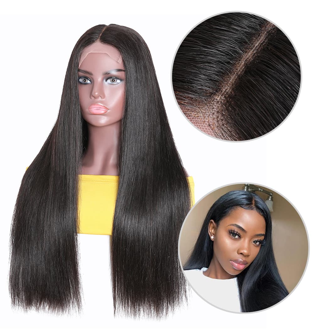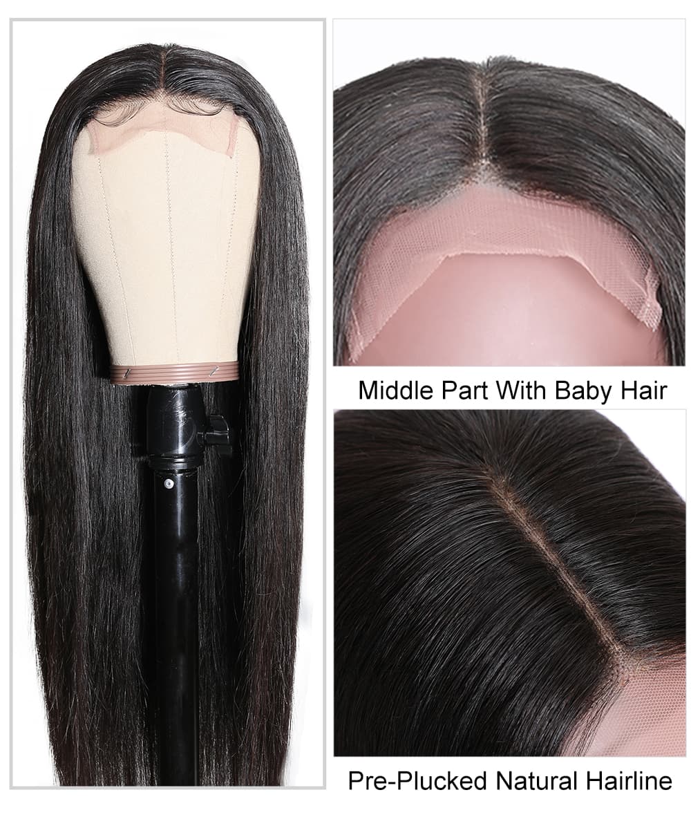 Incolorwig 150% Density Lace Parting Wig Middle Part Human Hair Wig 13*4 Lace Frontal Straight Hair Wig Natural Black Wig