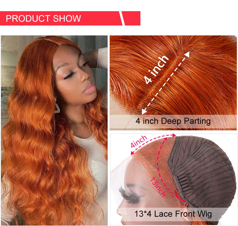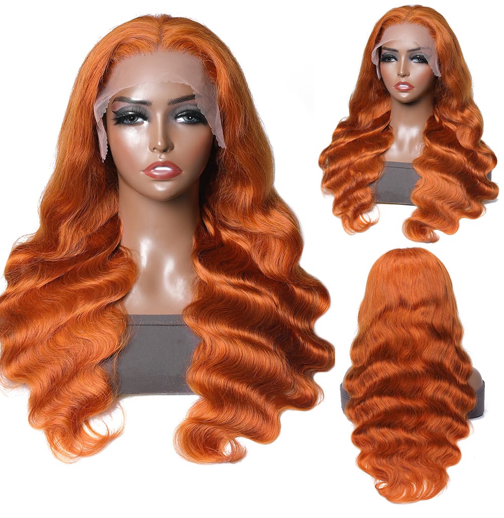 Incolorwig New Arrival Colored Ginger Orange Human Hair Wigs 150% Density 13*4 Lace Front Body Wave Wig Pre-plucked With Babyhair Fall Color Wig For Sale