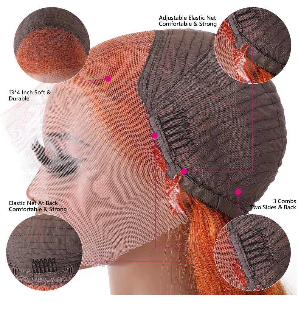 Incolorwig 18 Inch Ginger Orange Body Wave 13*4 Lace Front Wig Short Bob Headband Wig Bogo Free