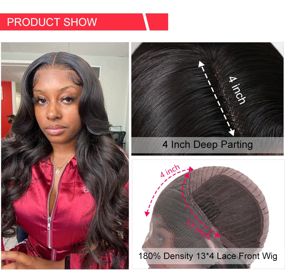 Incolorwig 180% Density Long Body Wave 13×4 Lace Front Human Hair Wigs With Baby Hair