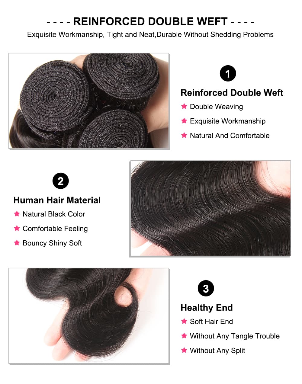 Incolorwig 3 Bundles Brazilian Virgin Hair Body Wave 100% Unprocessed Human Hair Weave Bundles 8-30 Inch Brazilian Body Wave