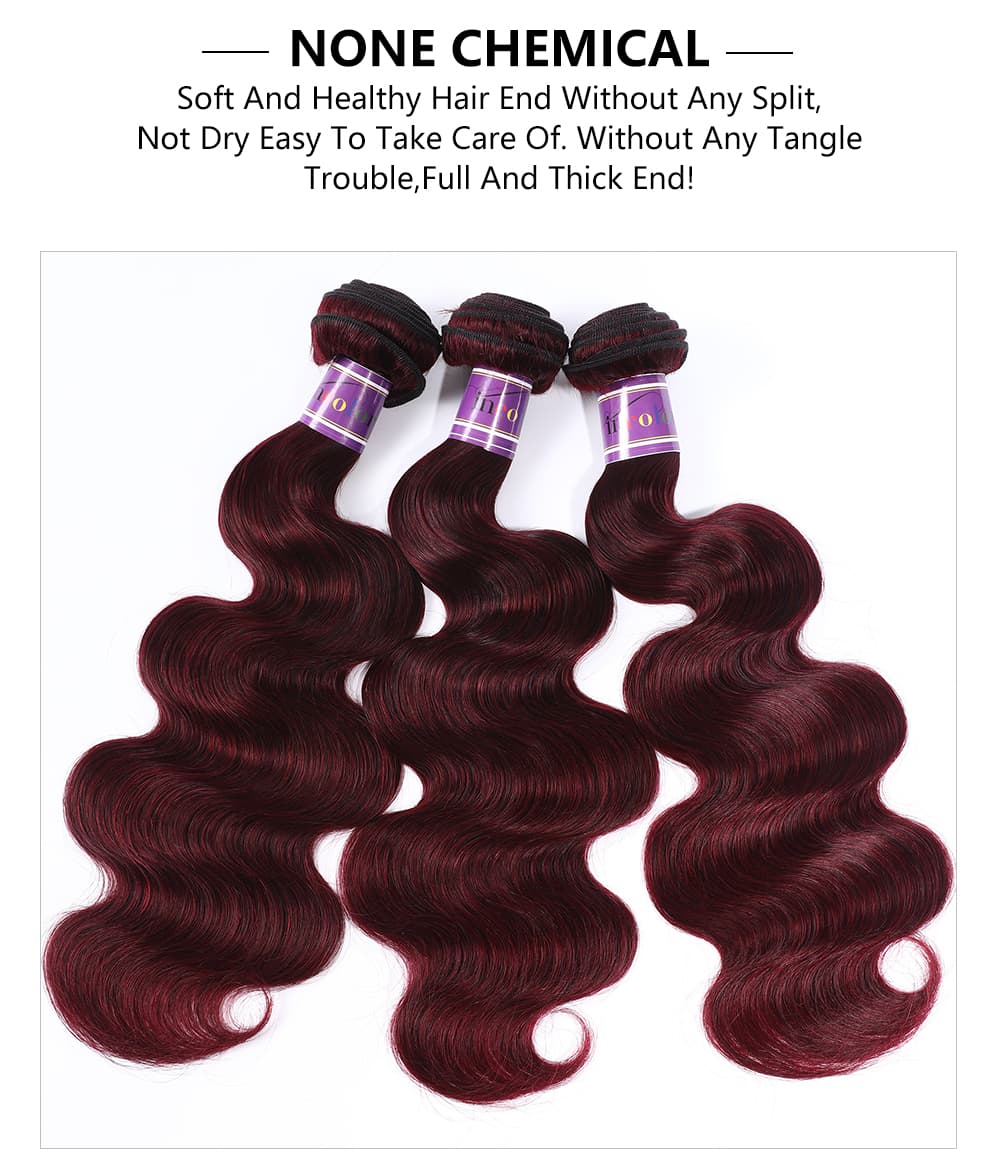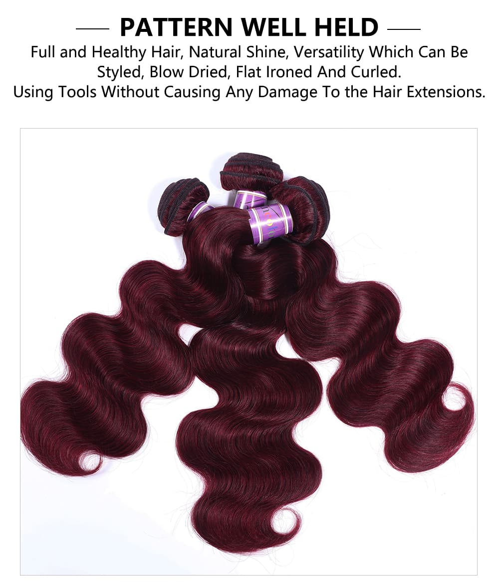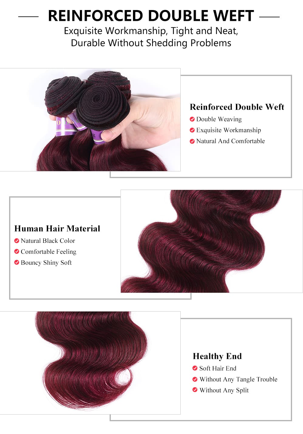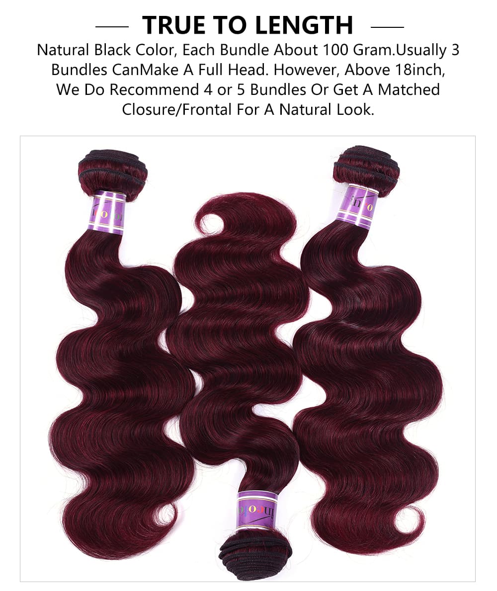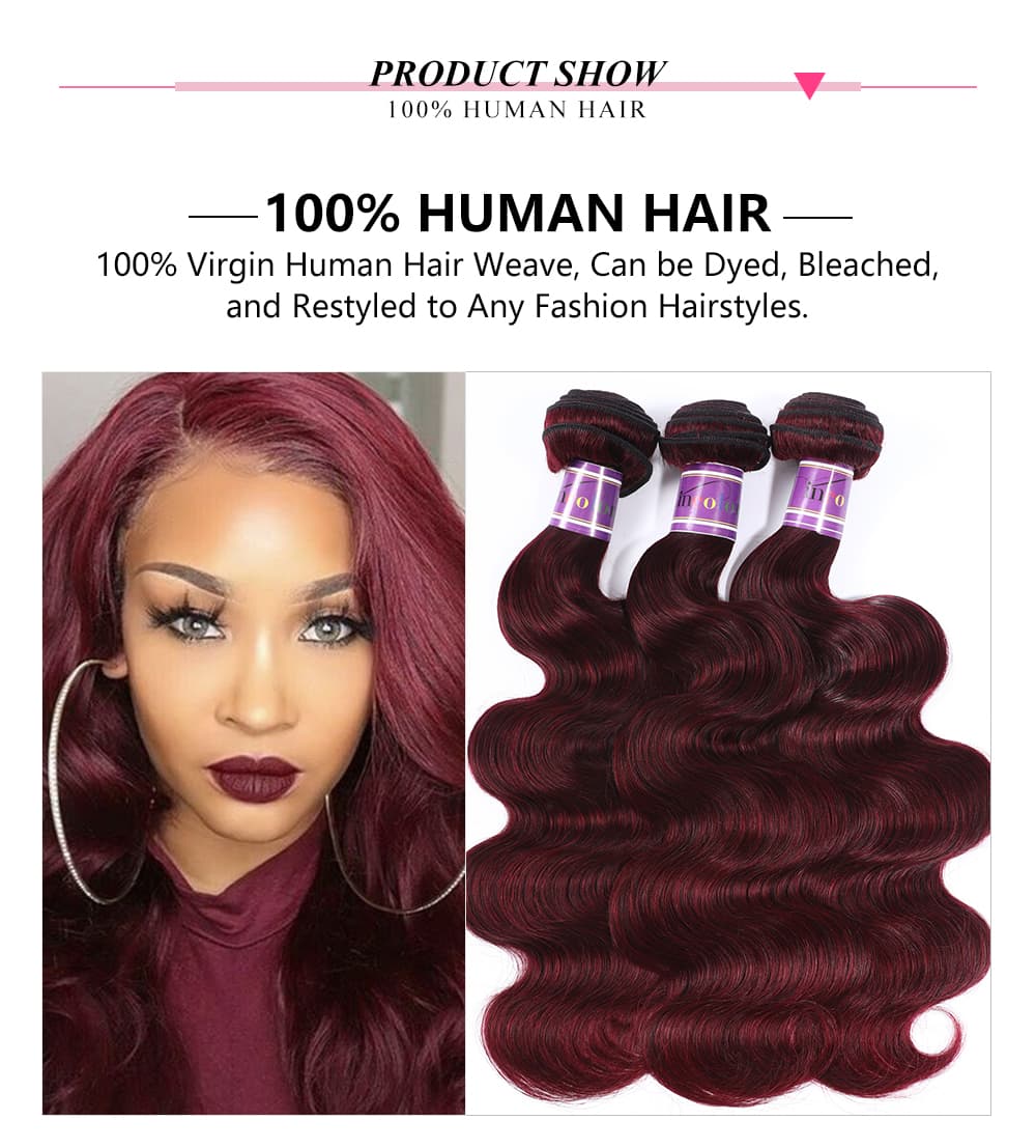 Incolorwig Hand-Picked Peruvian Human Hair For Women, 100% Remy Human Hair, 99J Burgundy Body Wave Hair 3 Bundles Deals In Stock