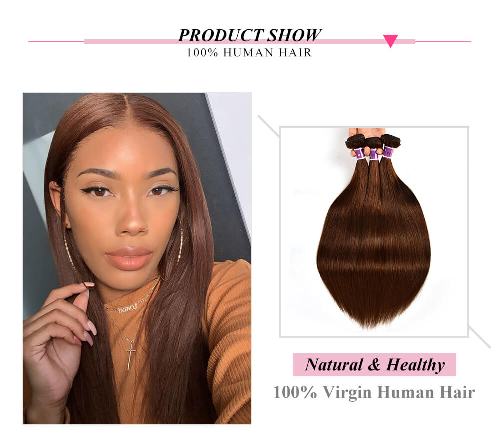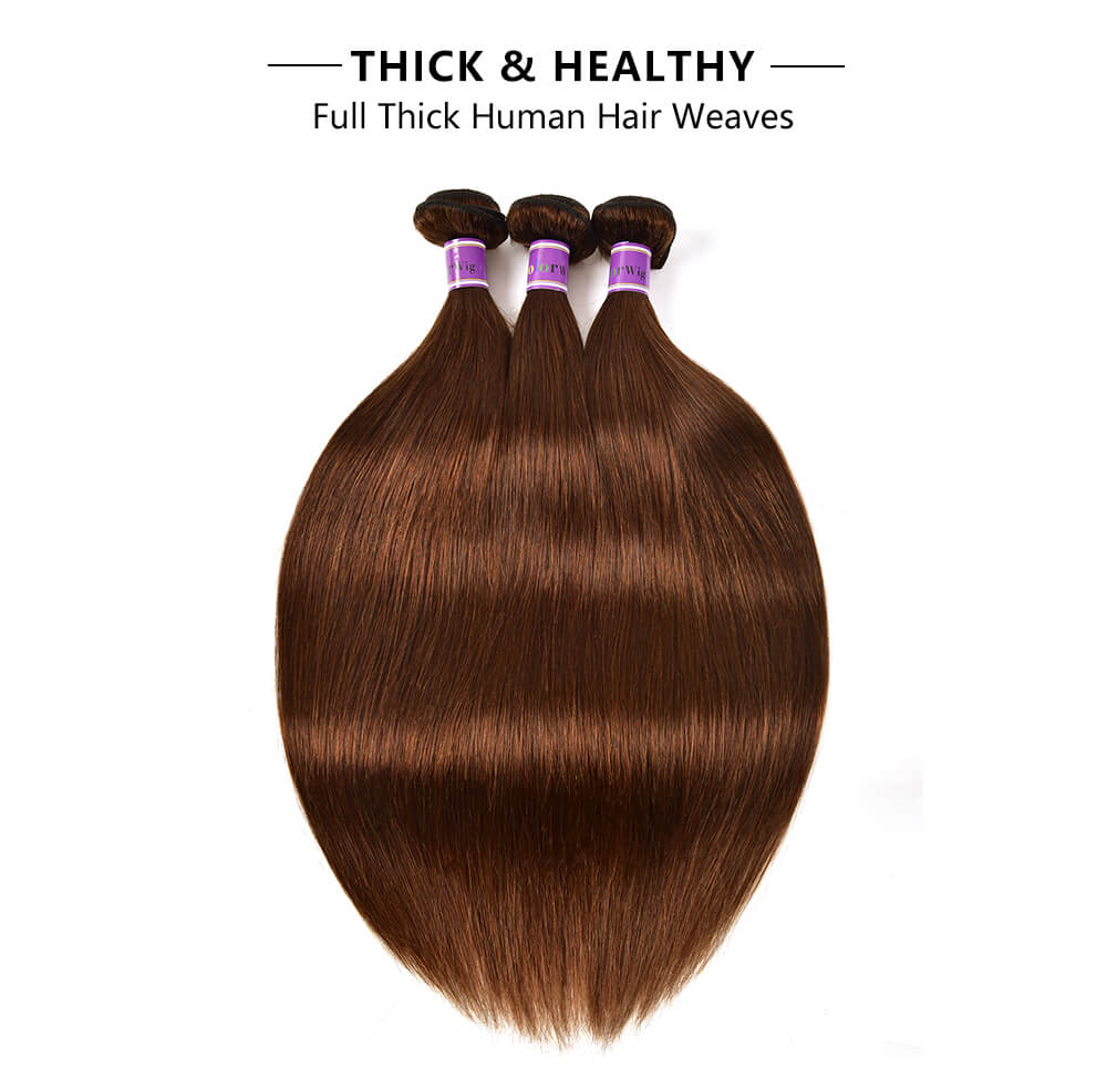 Incolorwig High Quality Brazilian Human Hair Weave, 100% Human Hair, 7A Grade Human Hair,Pre-colored Harmless #4 Medium Brown Straight 3 Bundles Weave