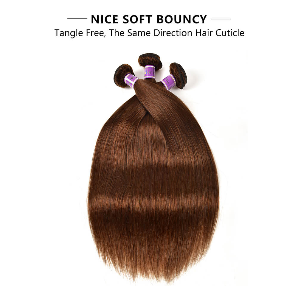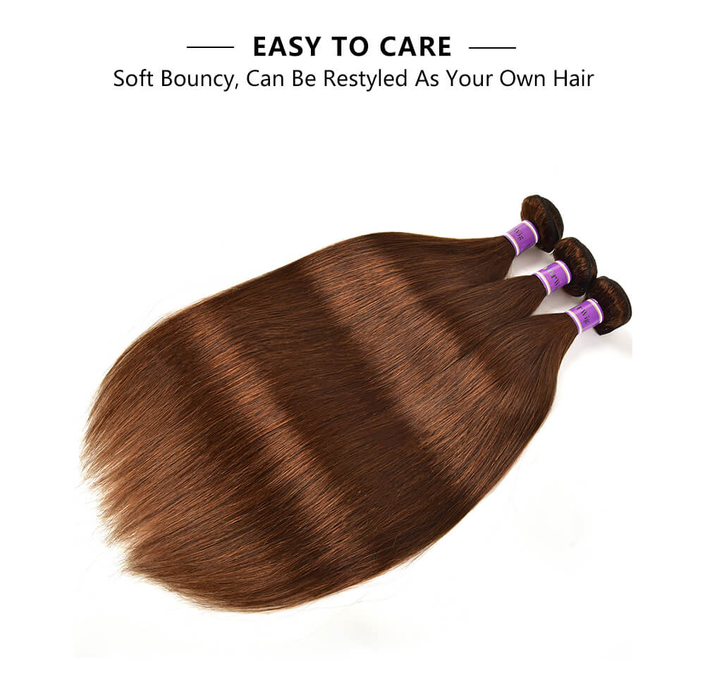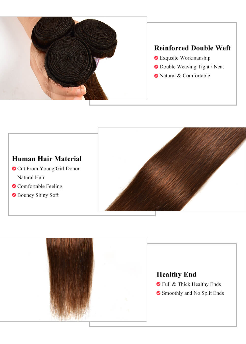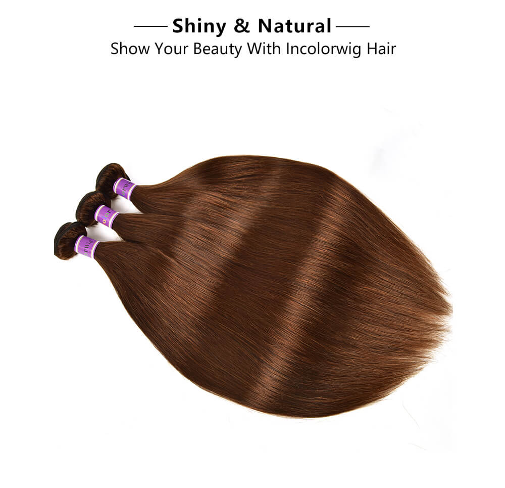 Incolorwig #4 Medium Brown Straight Virgin Brazilian Human Hair Weave 3 Bundles