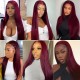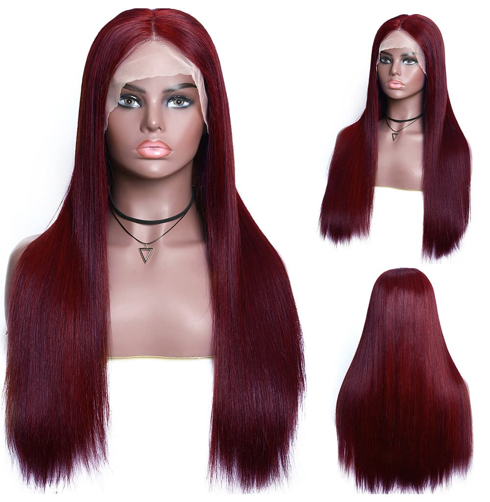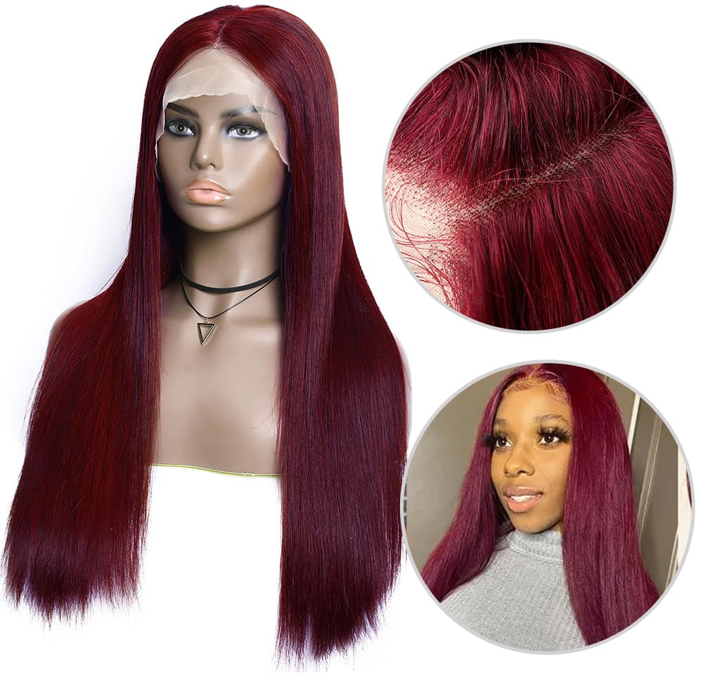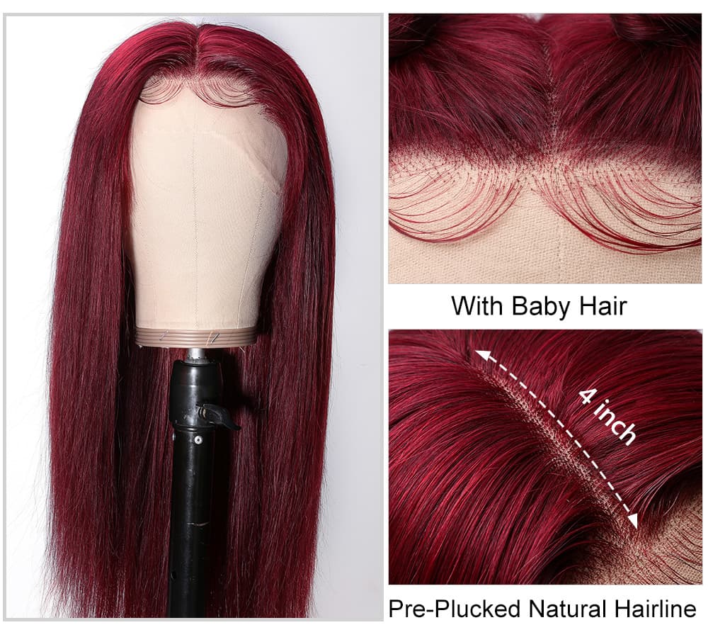 Incolorwig 99J Straight Human Hair Wig Pre-plucked 13*4 Lace Front Wig Red Wig With Baby Hair