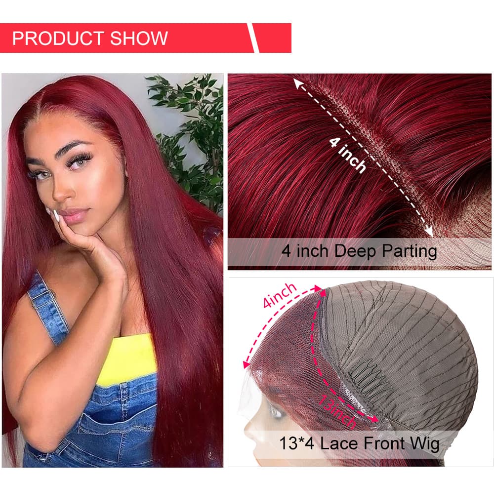 | Meta Keywords | Straight Human Hair Wig, High Quality 13*4 Lace Frontal Wig, 99j Color Wig |