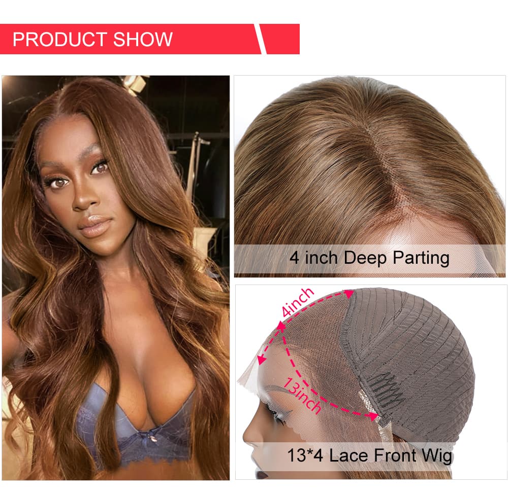 Incolorwig Chestnut Brown #F430 Ginger Color Loose Wave 13x4 Human Hair Auburn Highlight Lace Front Wigs 180% Density Big Voluminous Curls Long Wigs For Sale