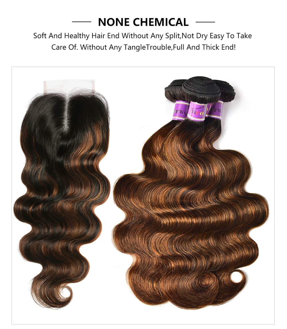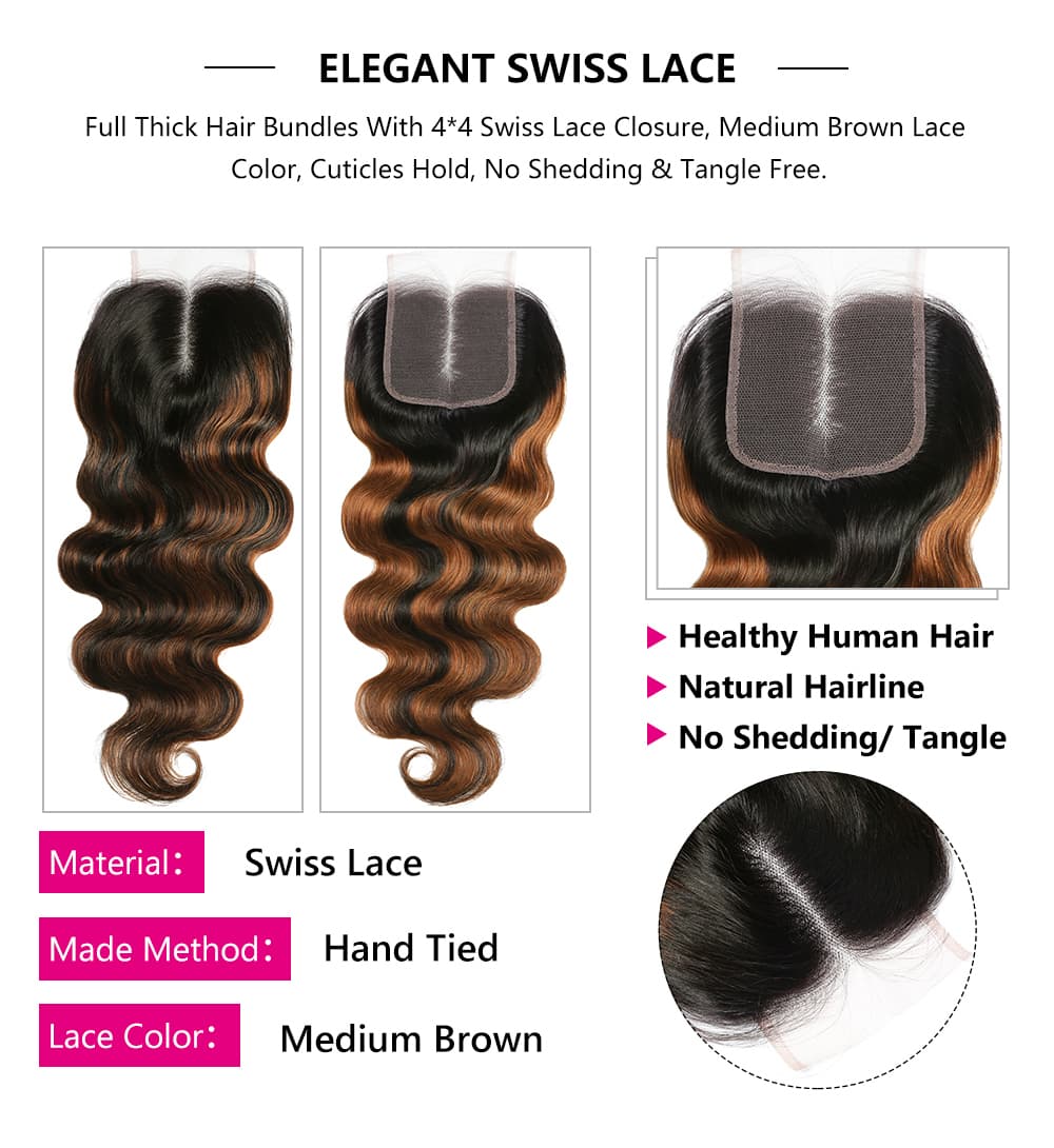 Incolorwig Balayage Highlights Color 4x4 Lace Closure With 3 Bundles Body Wave Virgin Hair