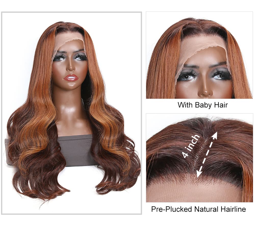 Incolorwig Body Wave 13*4 Lace Front Wig Pre Plucked Money Piece Dark Brown With Face Frame Highlight Wigs