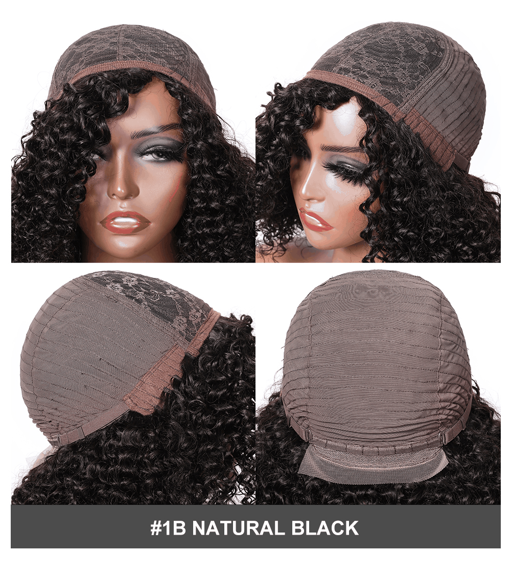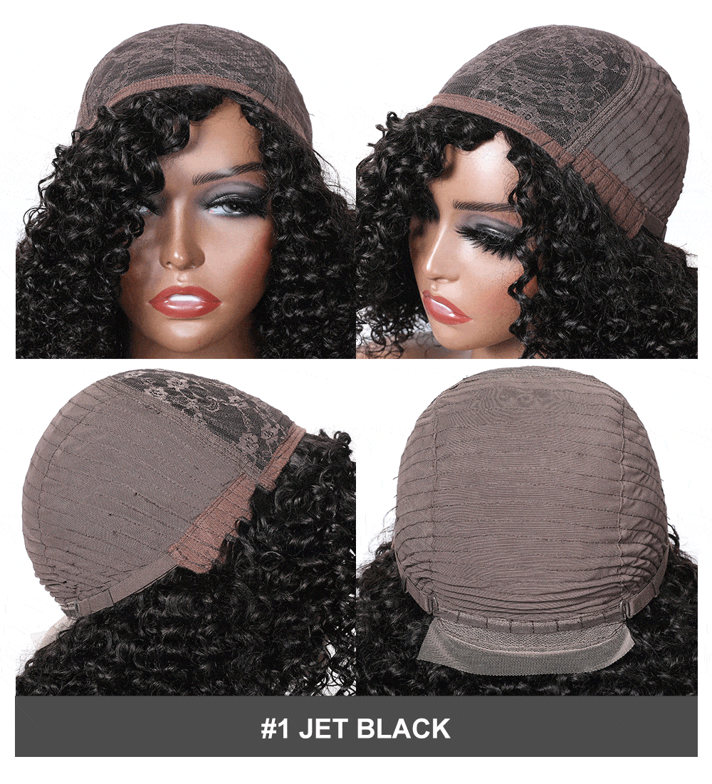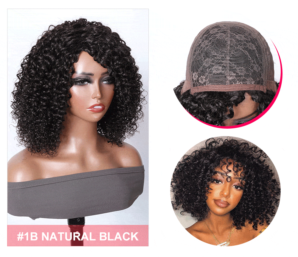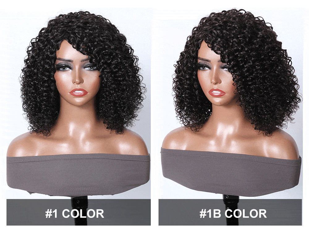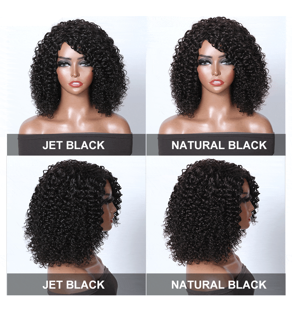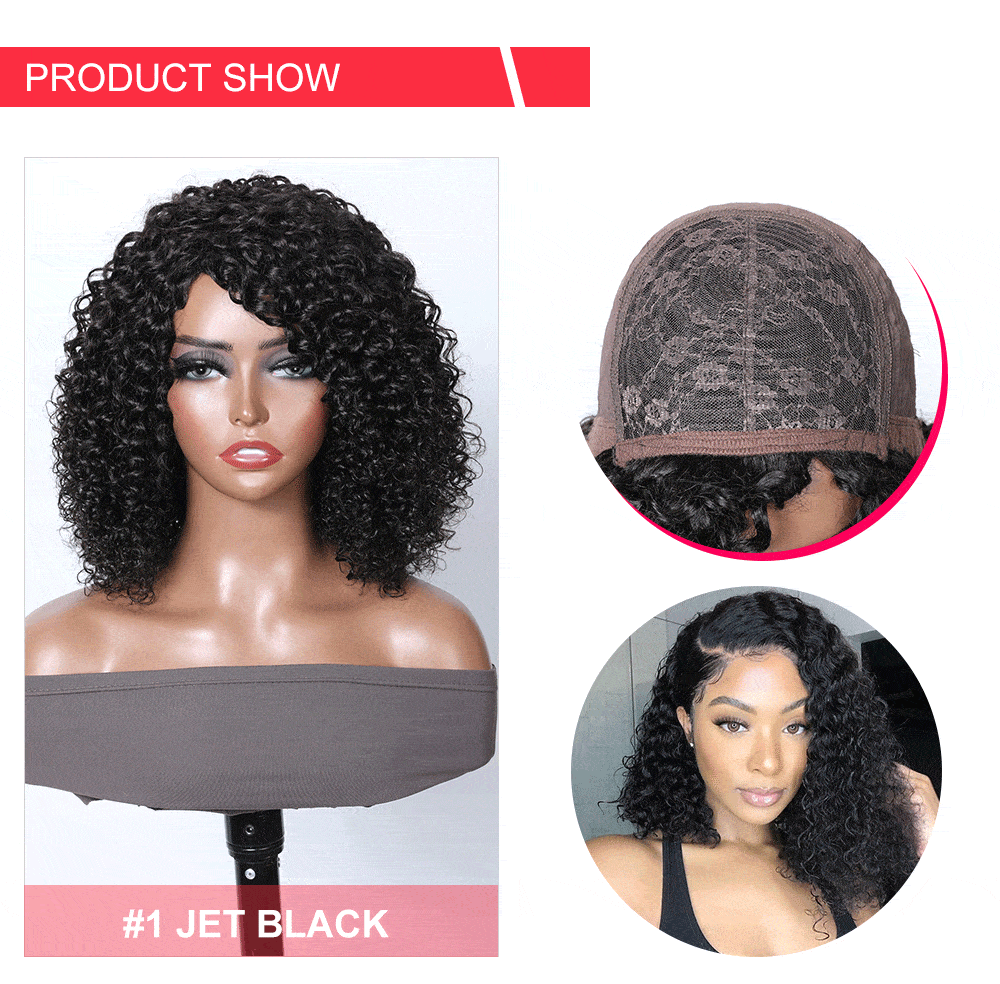Incolorwig Cheap Bouncy Curly Glueless Wigs Human Hair Bob Wigs 200% Density High Quality Human Virgin Hair Shiny Jet Black And Soft Natural Black #1B Hair