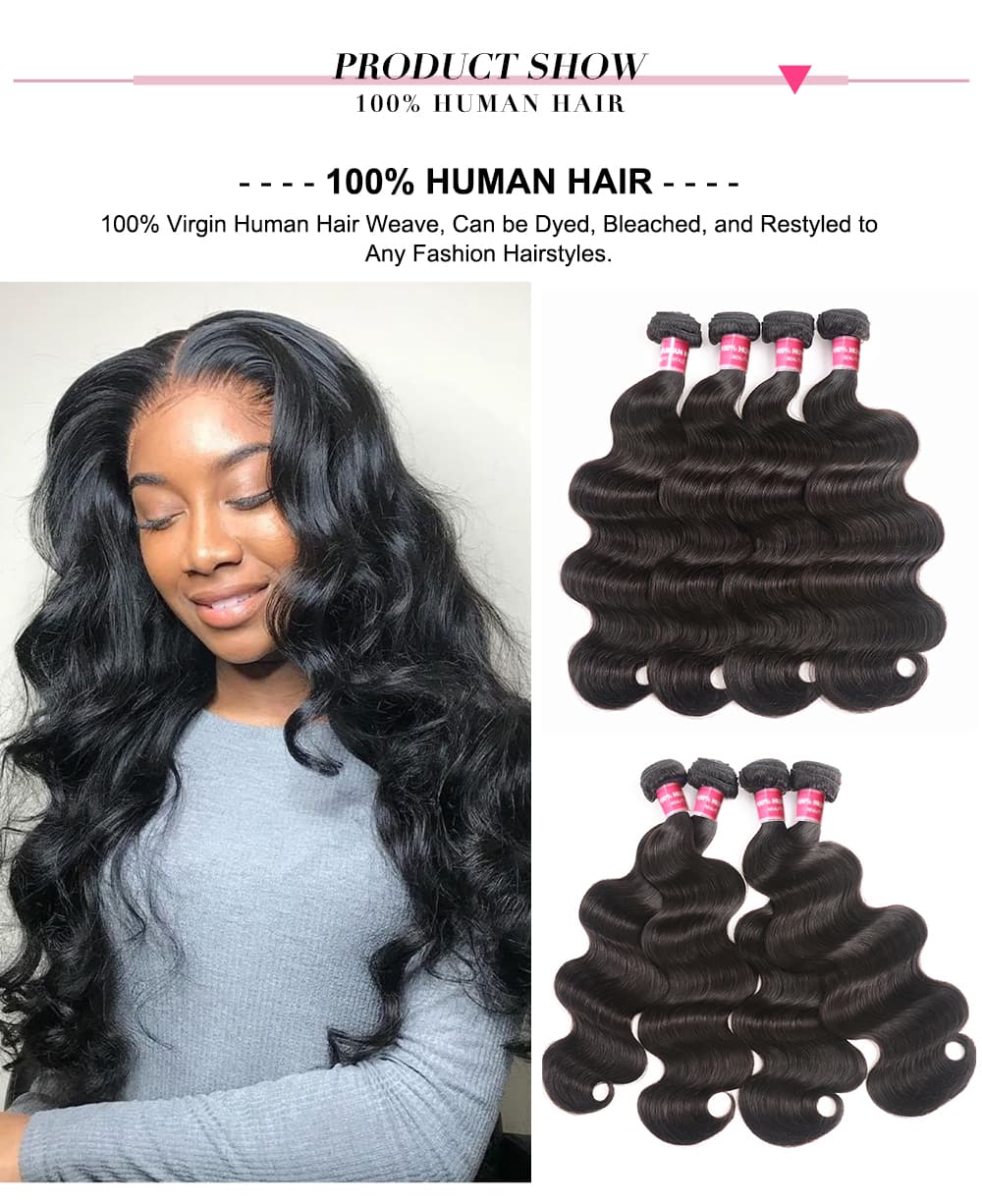 Incolorwig High Recommend Brazilian Body Wave Hair 100% Human Virgin Hair 4 Bundles Natural Black Body Wave Hair Weave