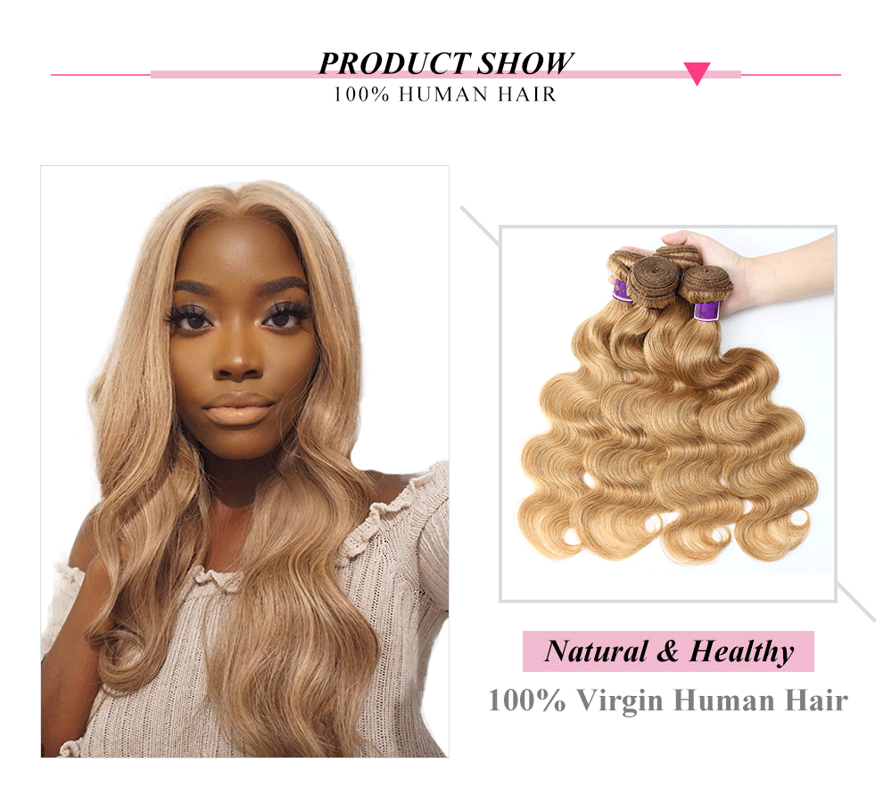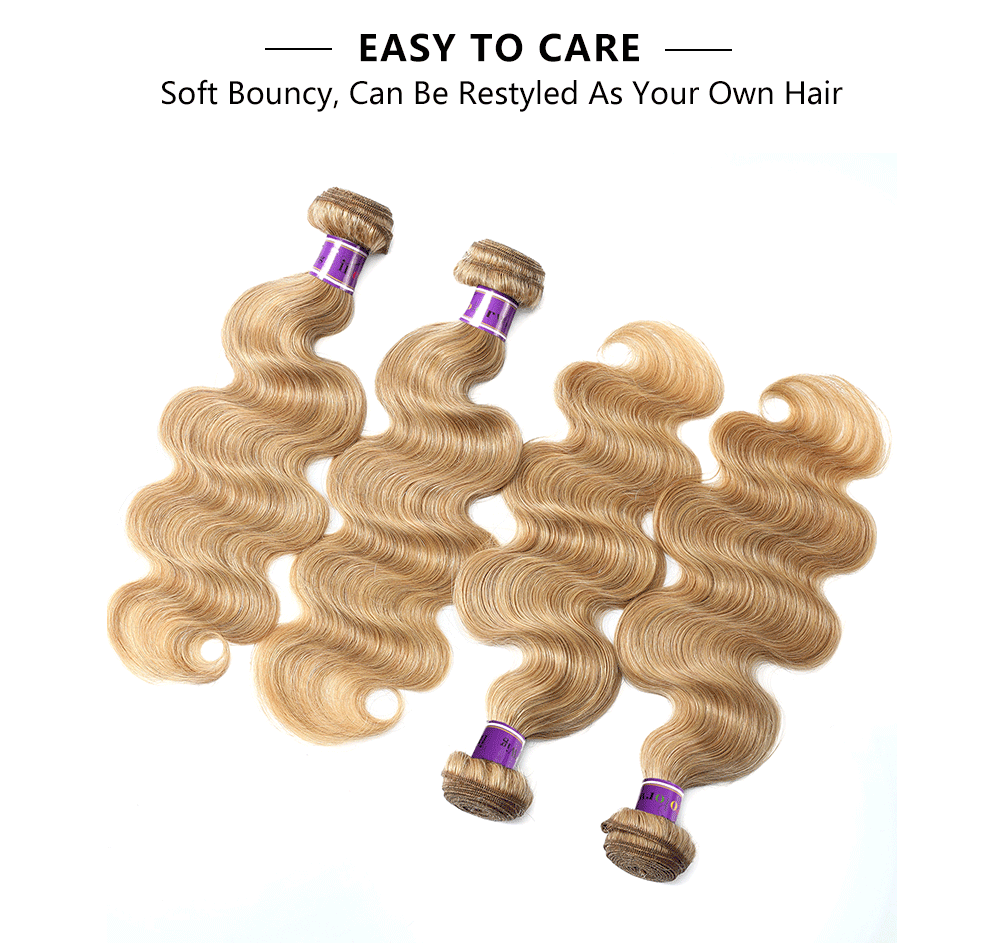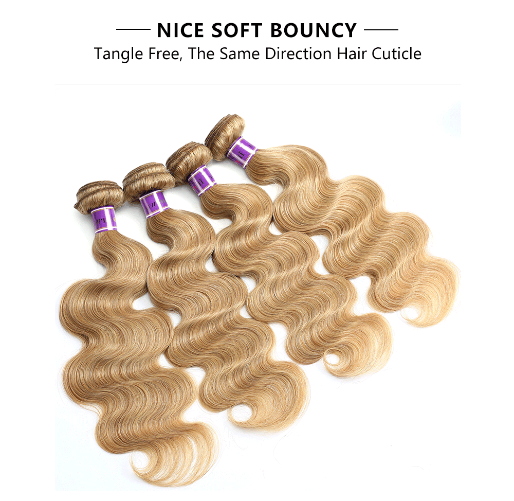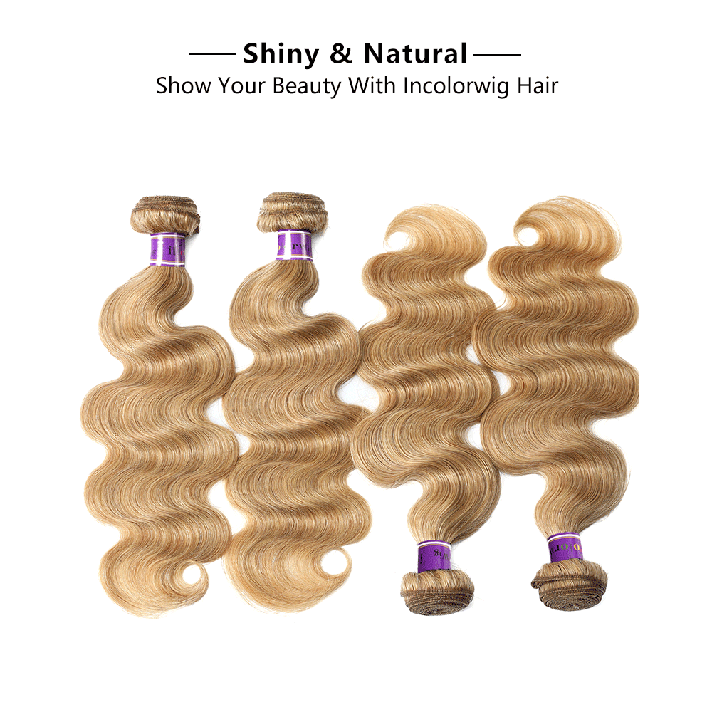 Incolorwig Brazilian Human Hair Weave #27 Honey Blonde Body Wave 4 Bundles Deal
