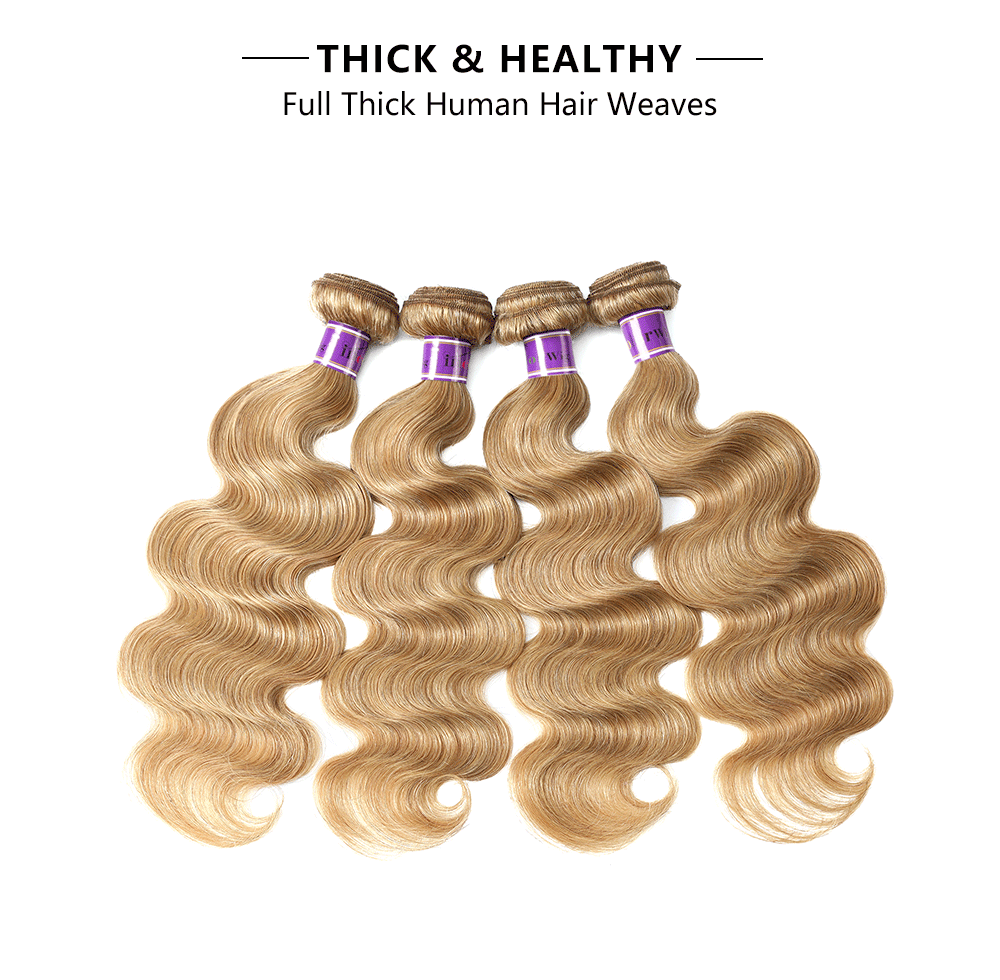 Incolorwig High-Quality Brazilian Human Hair Weave Bundles, Super Thick 4 Bundles Brazilian Human Hair, #27 Honey Blonde Body Wave Virgin Hair