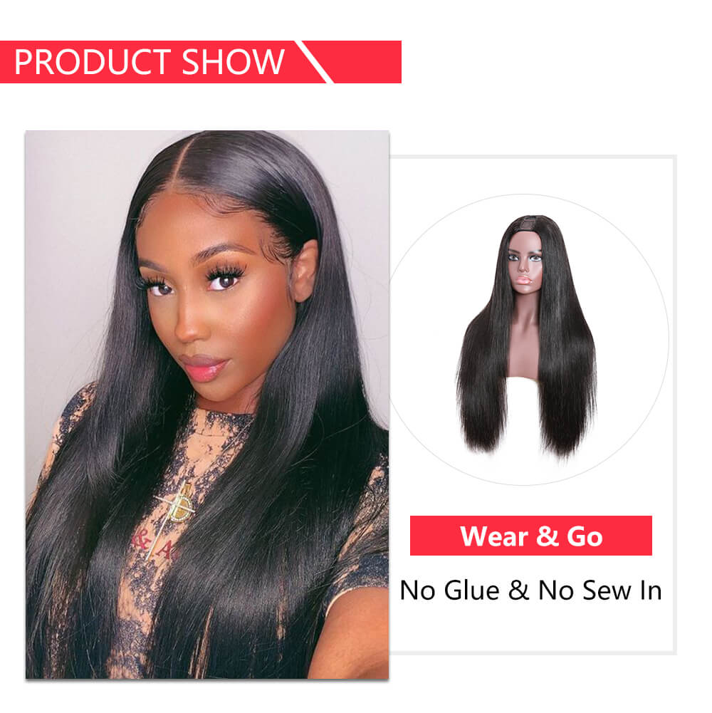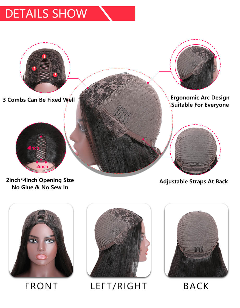 Incolorwig Brazilian Straight Human Hair Wigs 2*4 Opening Size U Part Wigs 150% Density Middle Part Wigs