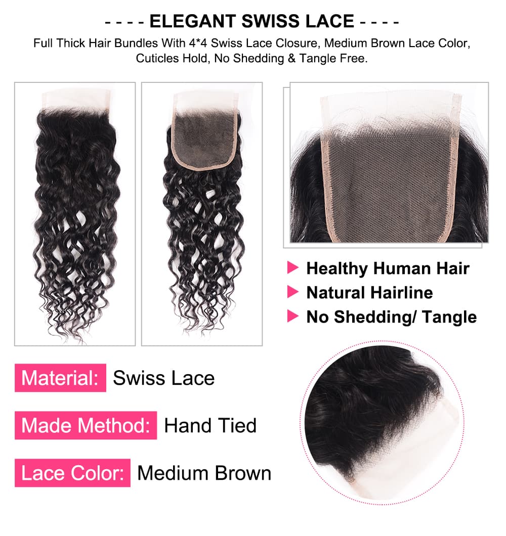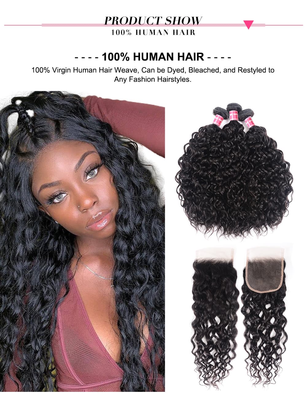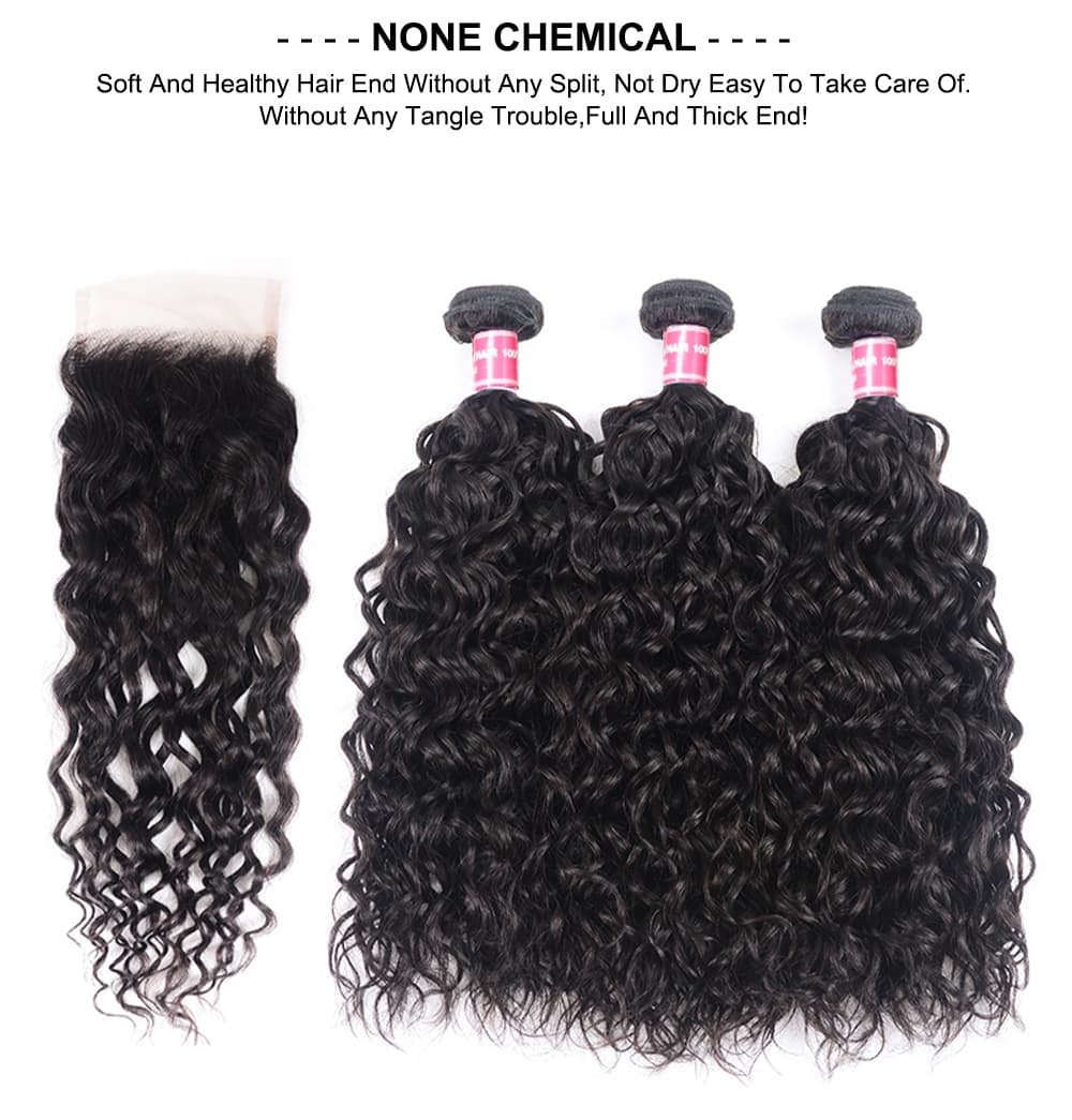 Incolorwig Brazilian Water Wave Virgin Hair Weave 3 Bundles With Lace Closure 100% Virgin Human Hair