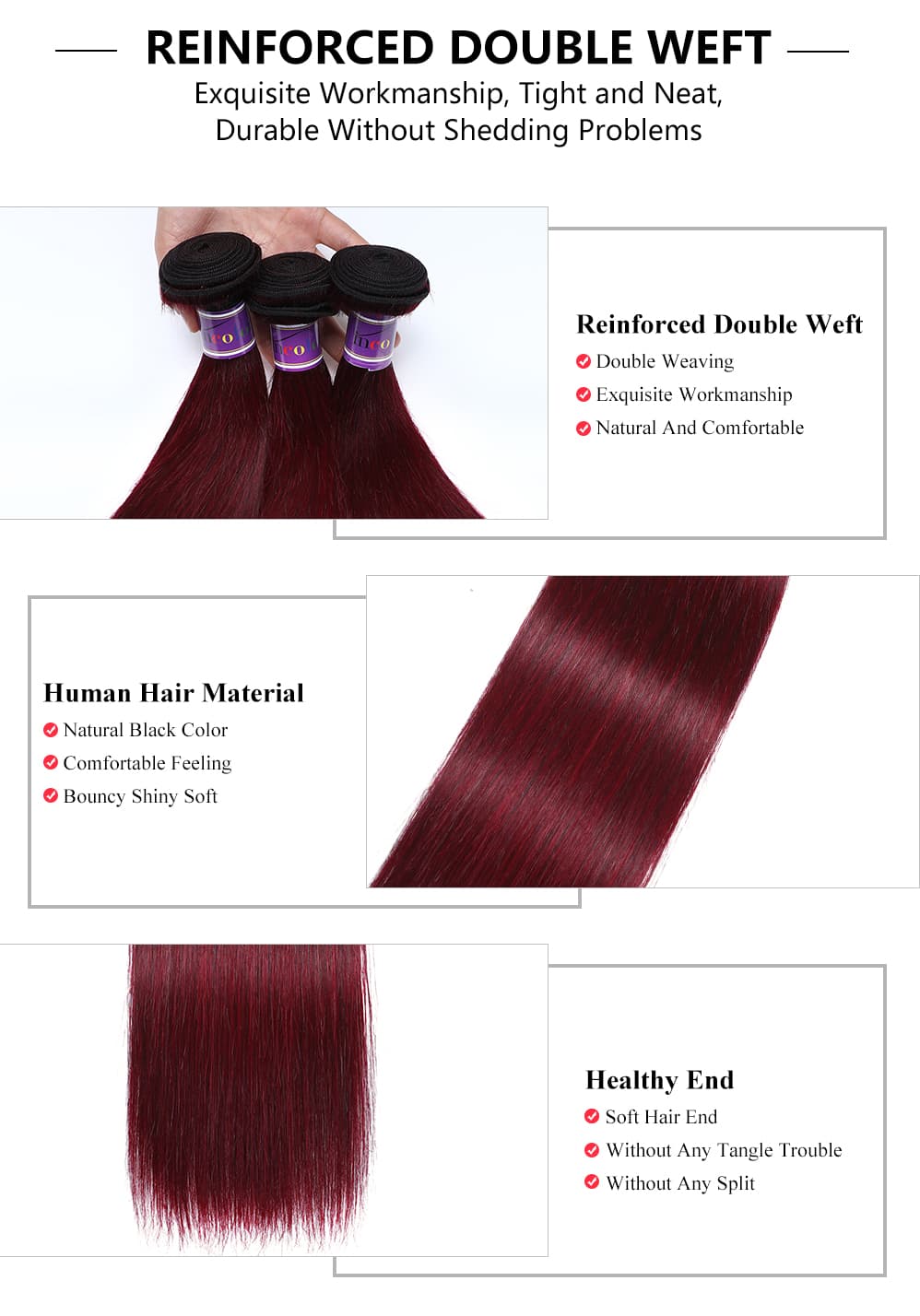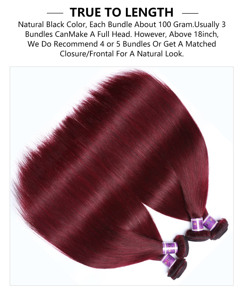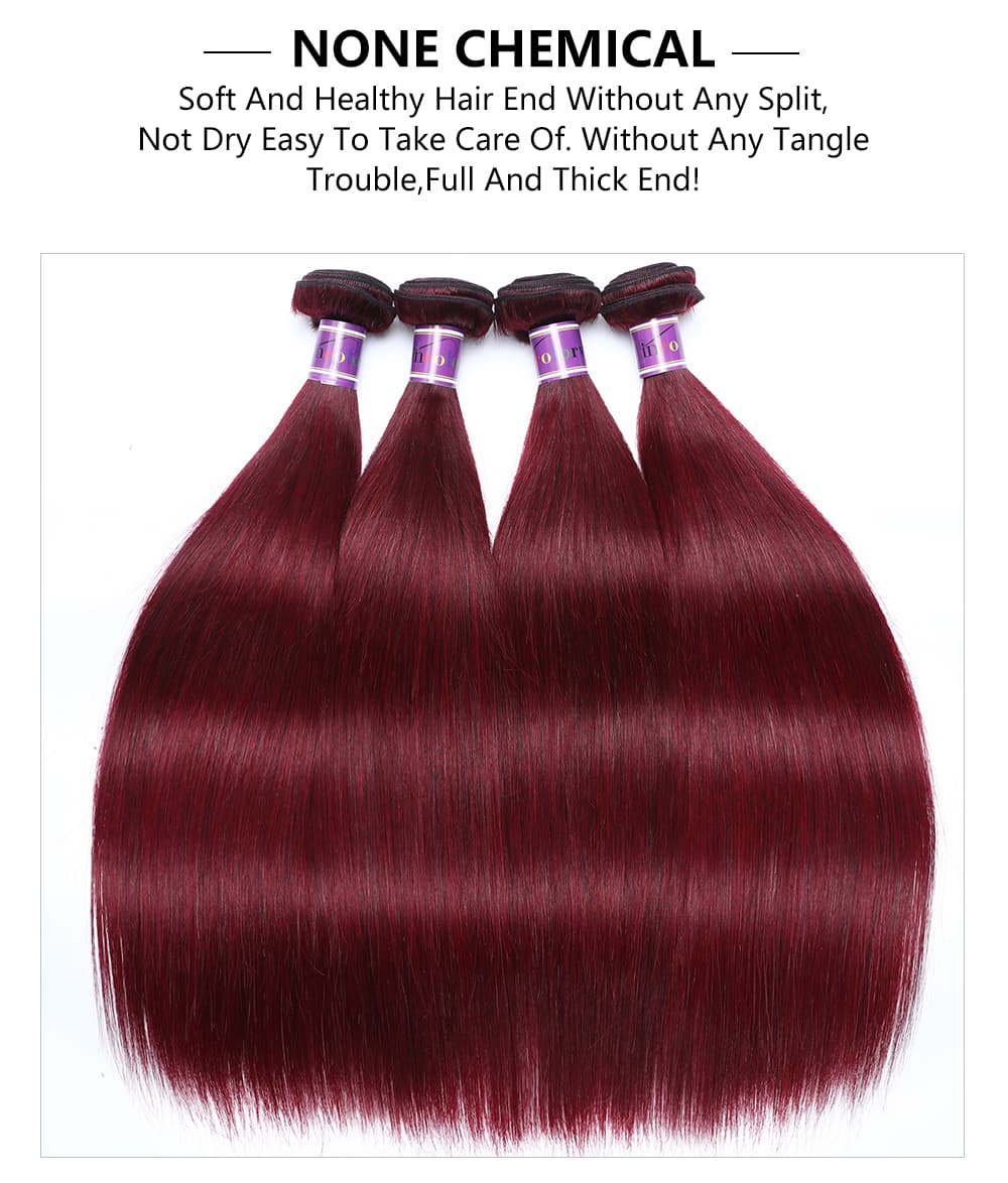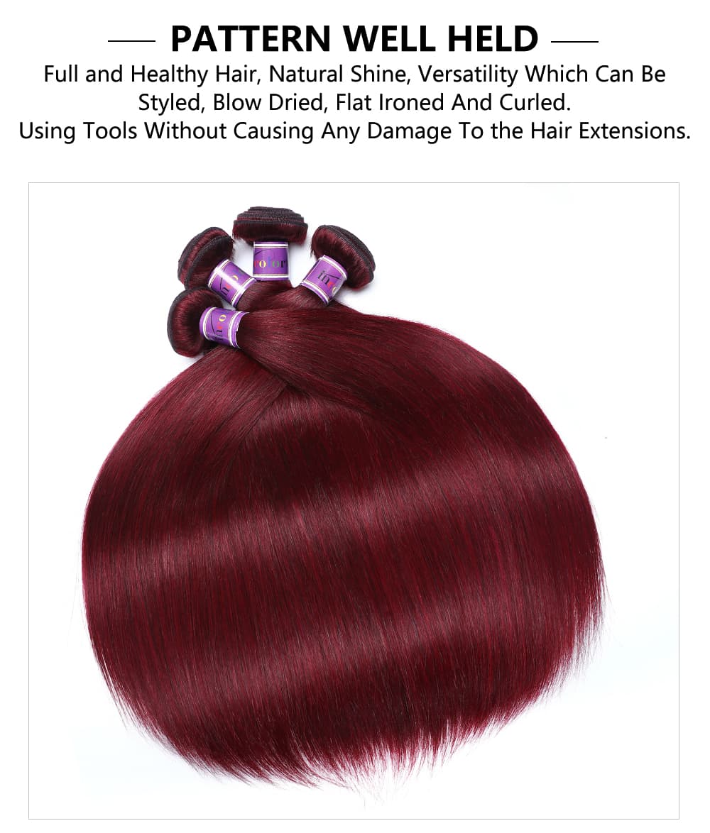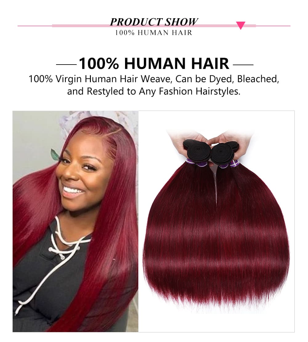 Incolorwig Pre-colored 99J Virgin Brazilian Human Hair, Virgin Human Hair Weave, 4 Bundles Straight Hair Combination