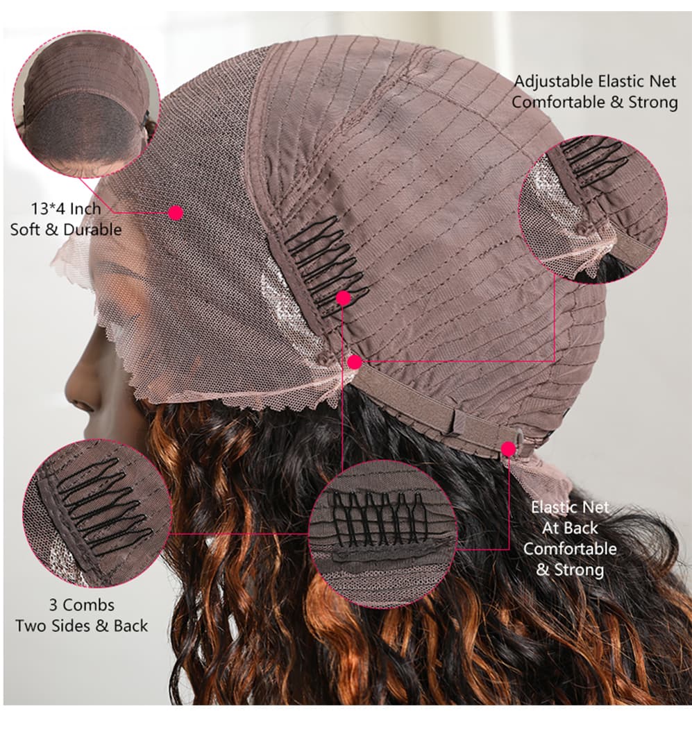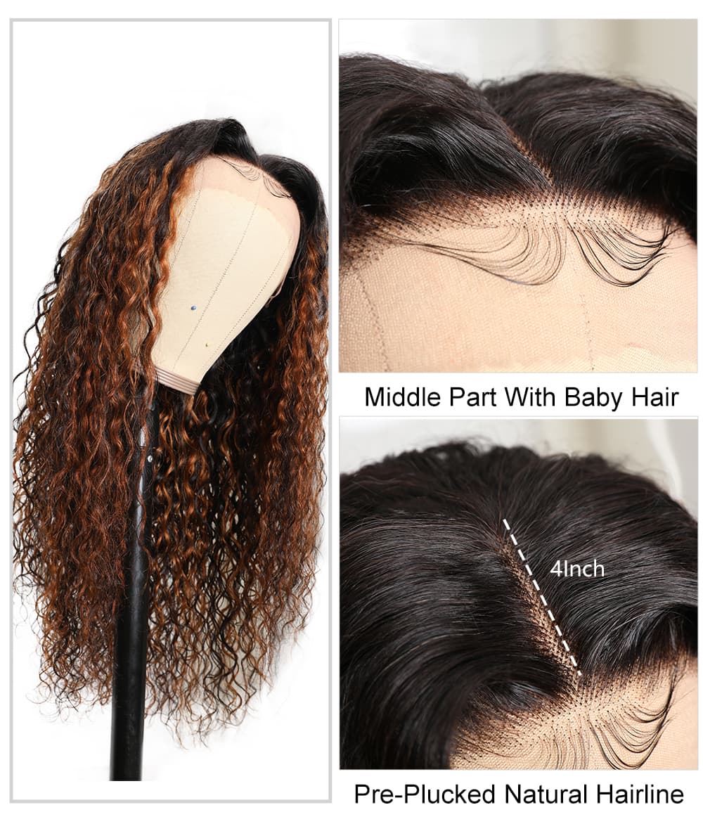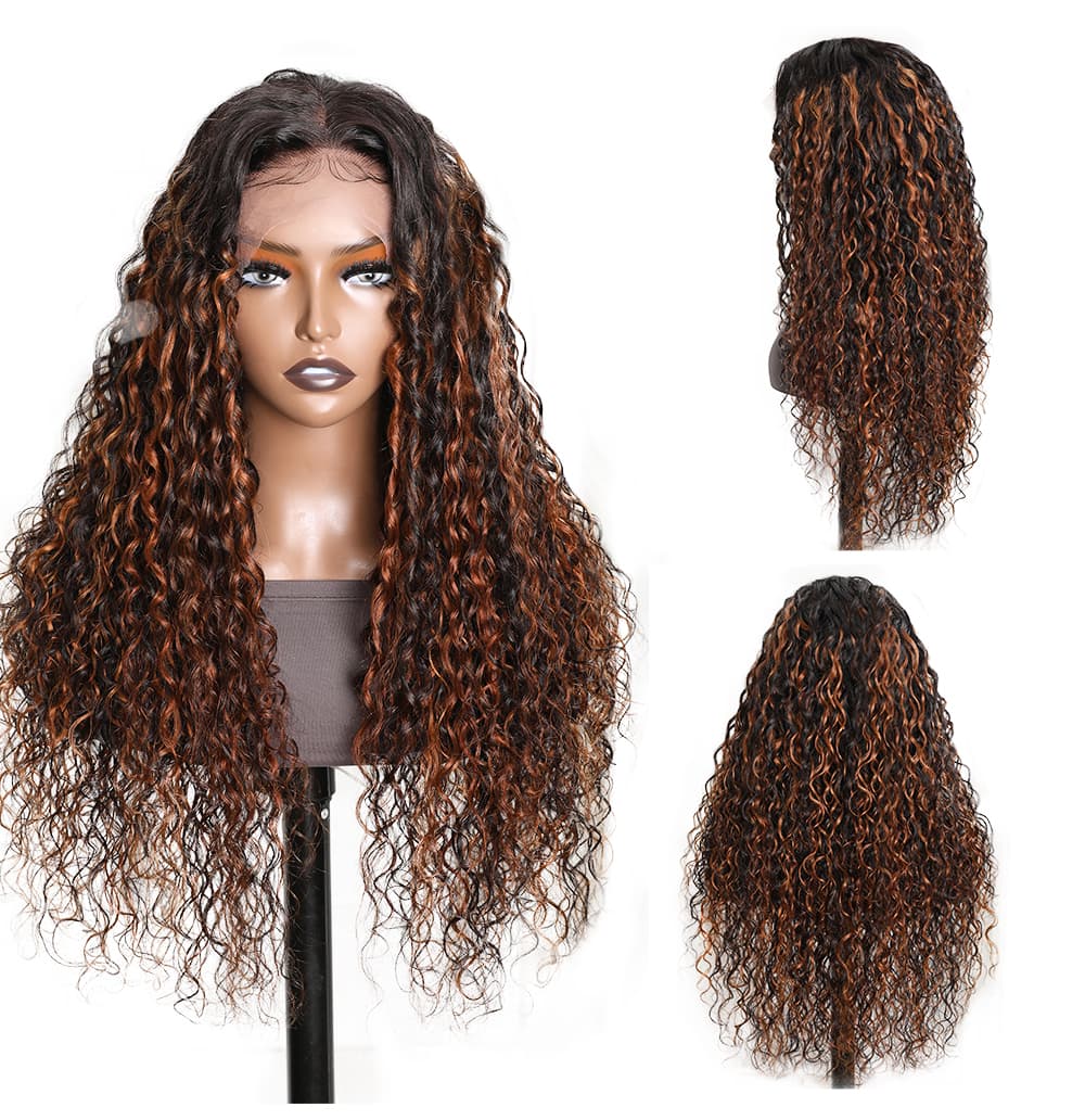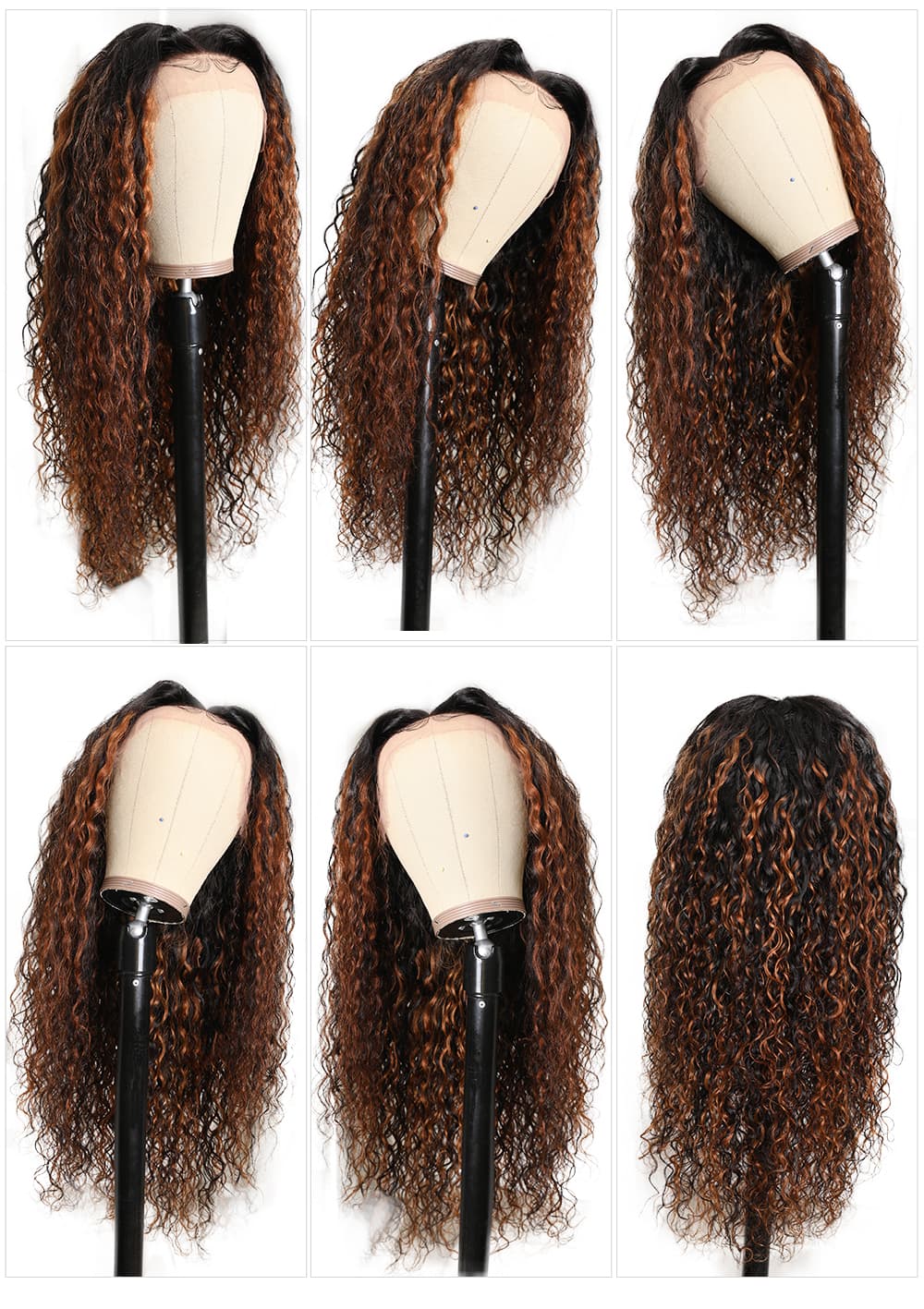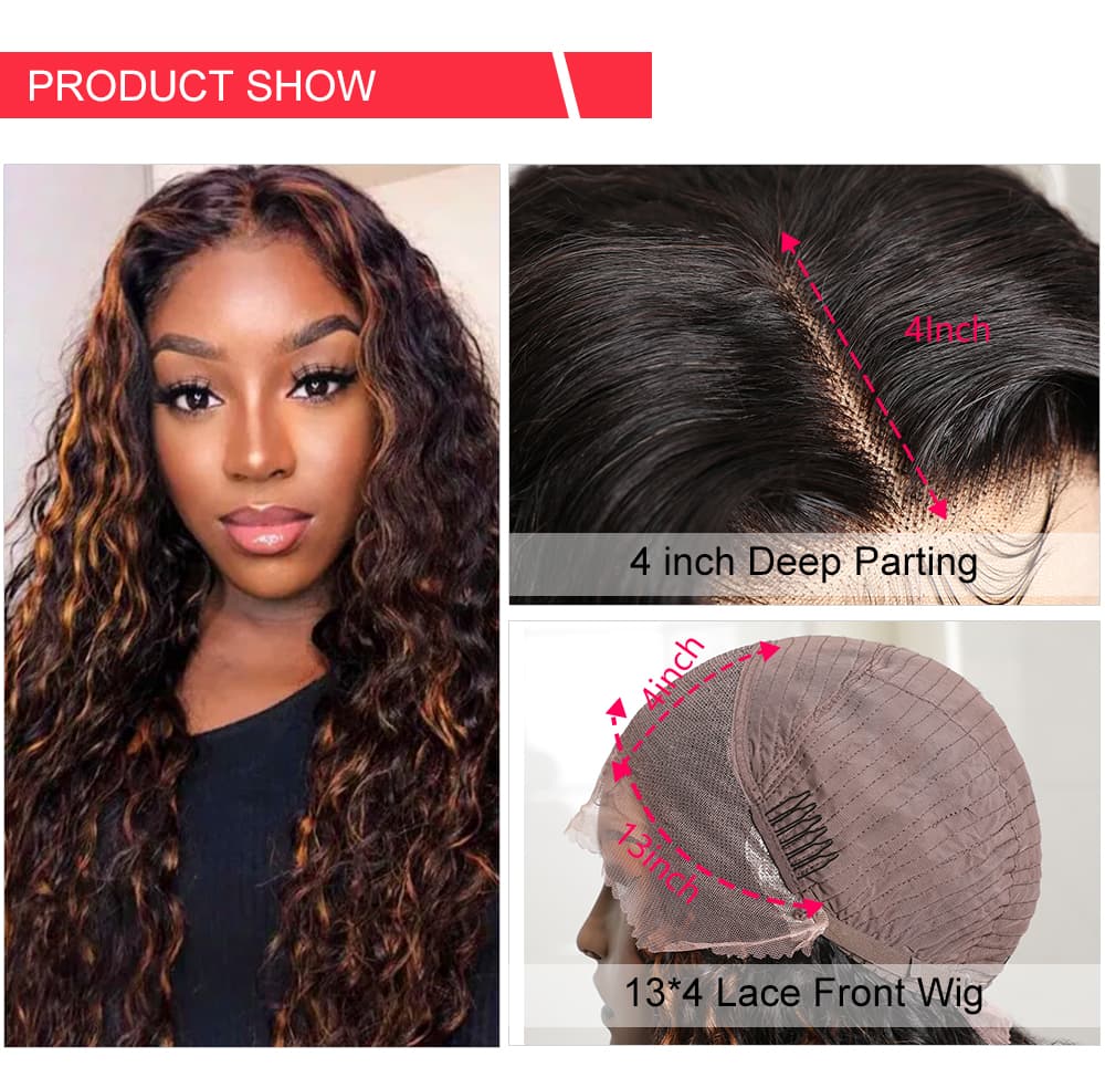 Incolorwig Chocolate Brown Color Highlight Water Wave Wig 13*4 Lace Front Wigs 150% Desnity Ombre Wig