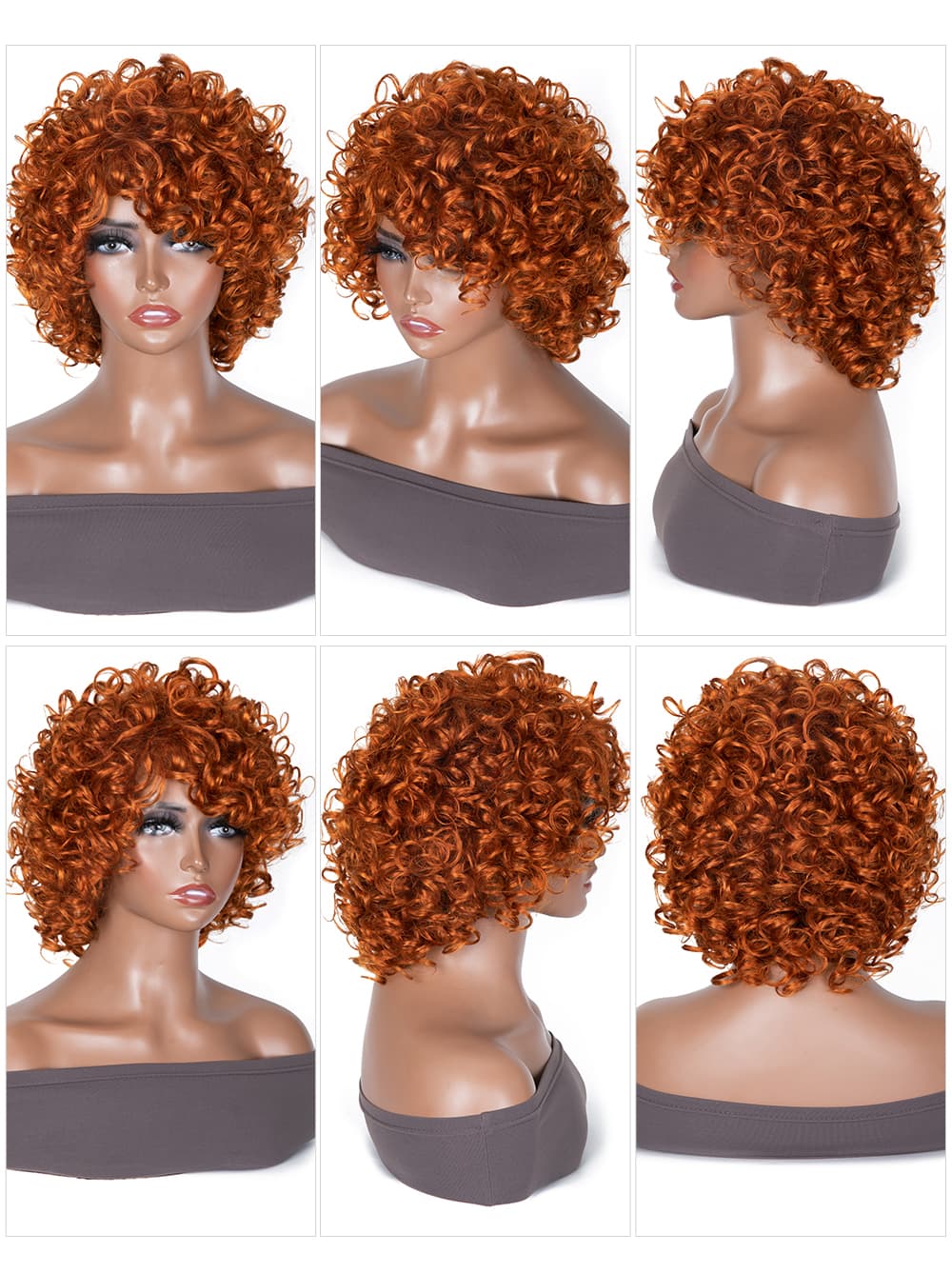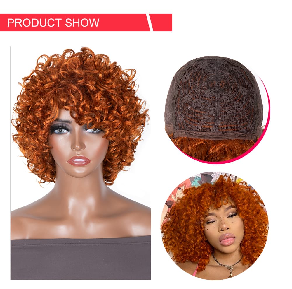 Incolorwig High Quality Ginger Orange Curly Human Hair Wigs Short Pix Cut Bob Wigs Machine Made Bouncy Curly Wigs With Bangs Wholesale Price