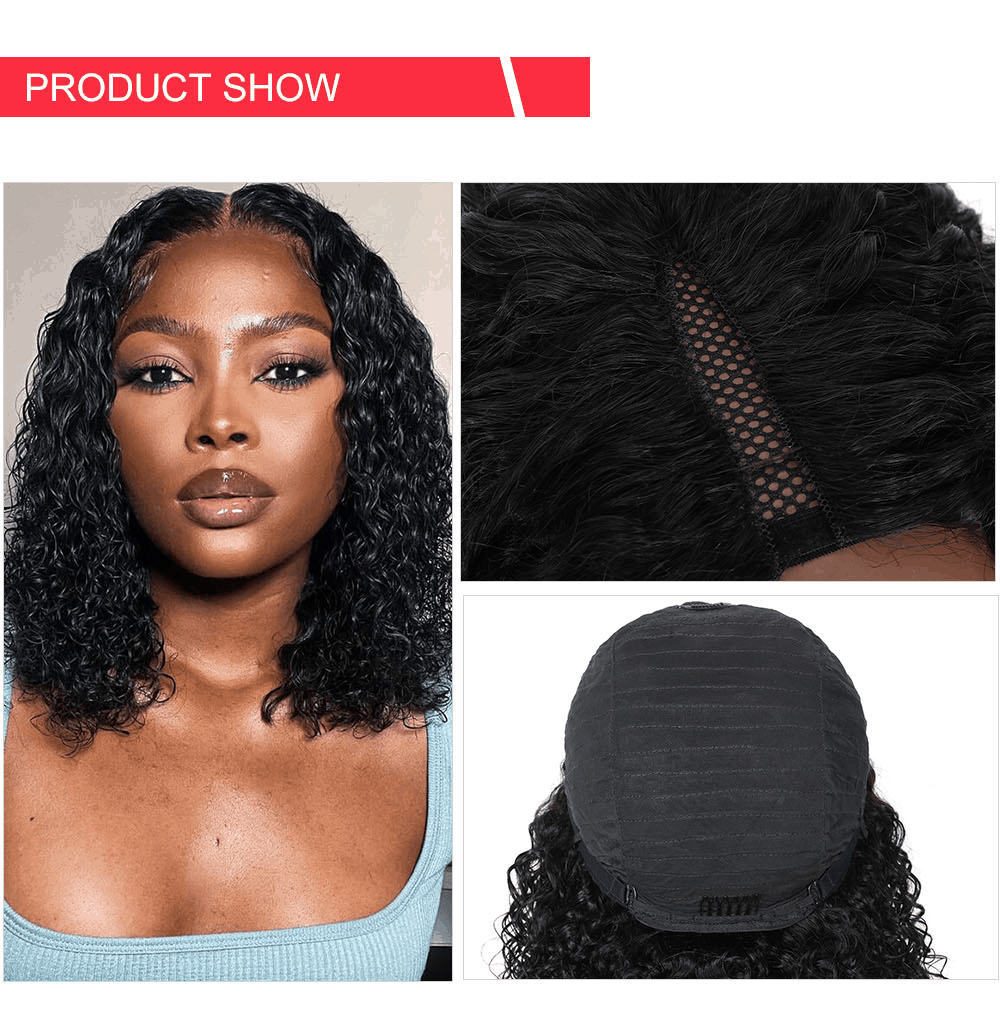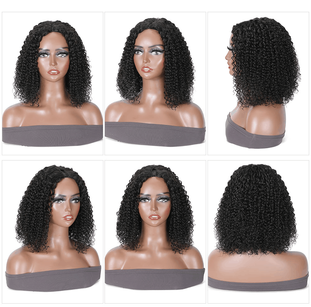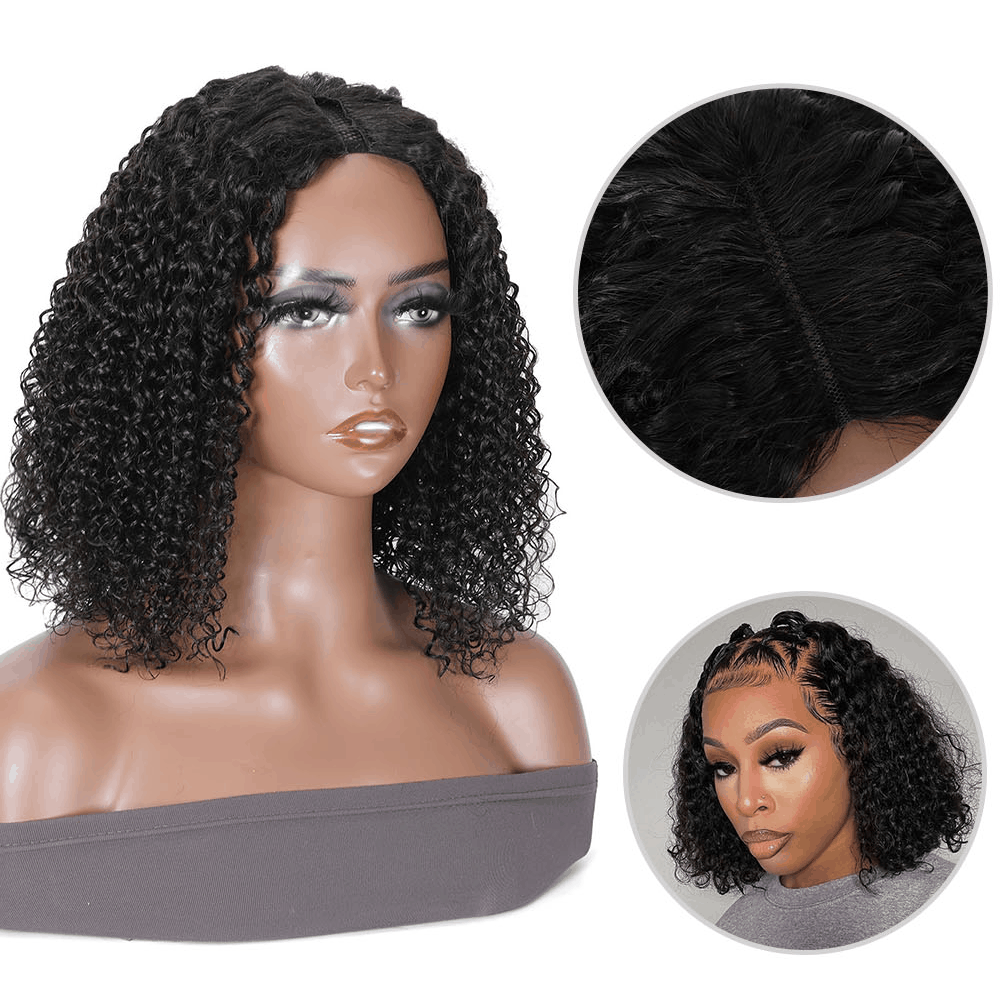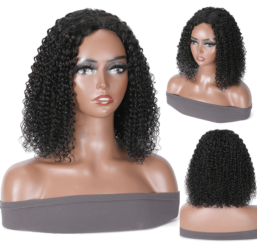 Incolorwig Fashion Short Cut Bob Wigs Natural Black Jerry Curly V Part Glueless Wigs For Women