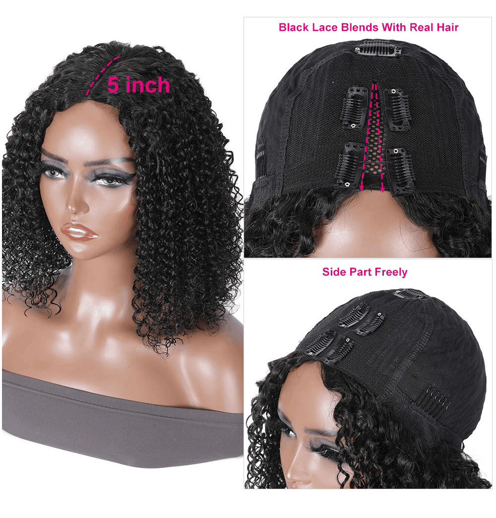 Incolorwig High Quality Short Cut Bob Wigs 5x2.5 Inch Jerry Curly V Part Human Hair Wig Natural Black Glueless Wigs No Works Need Wear And Go Wigs