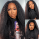 Incolorwig Glueless Kinky Straight Lace Part Wigs Realistic Natural Black Human Hair Wig