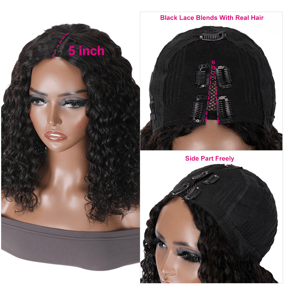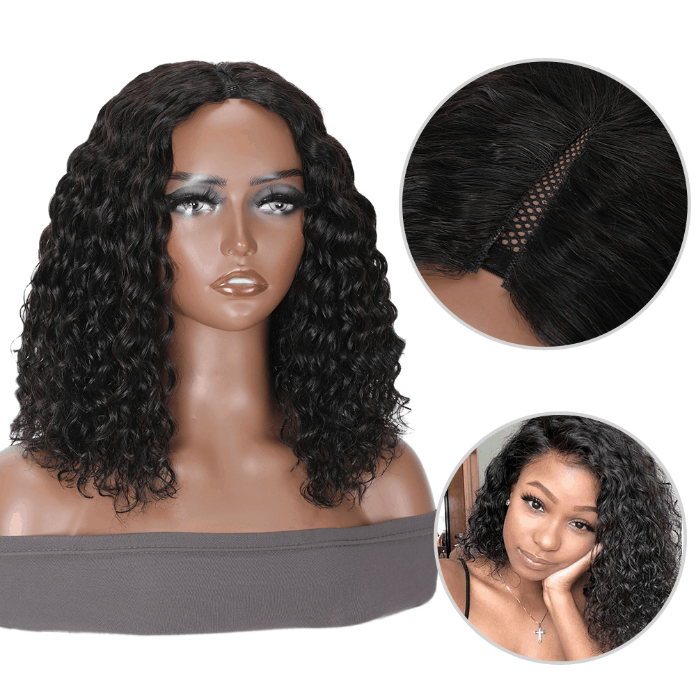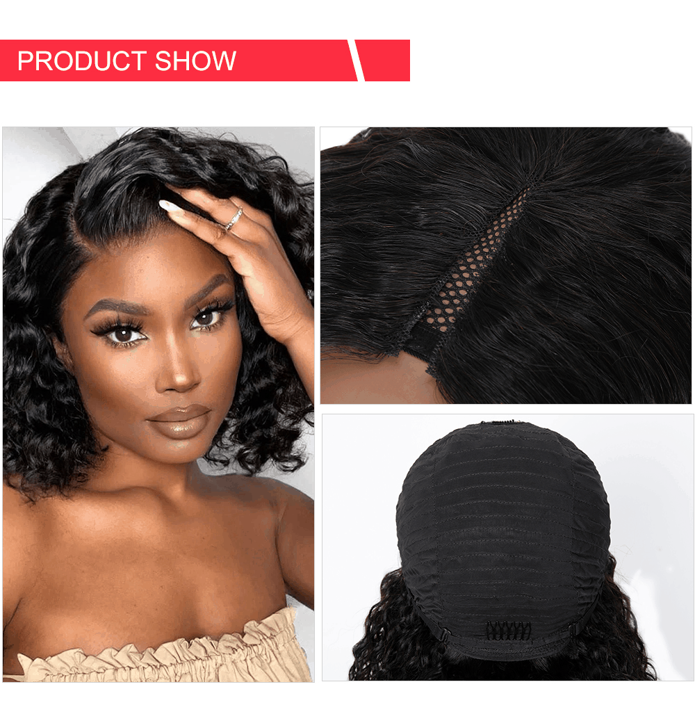 Incolorwig Natural Black Water Wave Bob Wigs No Leave Out Water Wave V Part Wig Beginner Friendly Upgrade U Part Wig 150% Density Wig For Sale