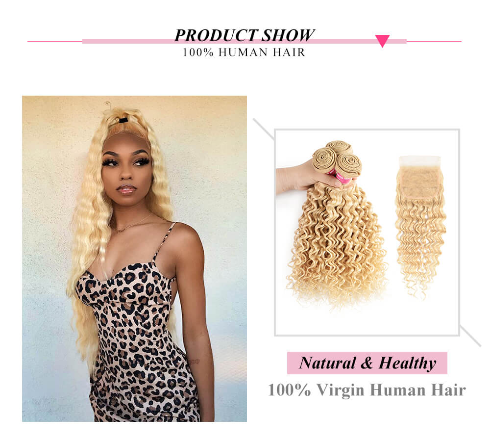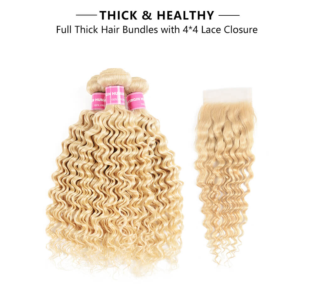 Incolorwig 100% Malaysian Human Hair 3 Bundles With 4*4 Lace Closure, #613 Blonde Deep Wave Hair, 8-24 Inches In Stock, Versatile Styles And Colors Available For Different Occasions, Can Choose Whatever You Like From Our Store.