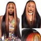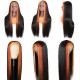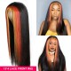 Incolorwig Highlight 13*4 Lace Frontal Wig 150% Density Natural Black Mixed Orange And Yellow Straight Wig