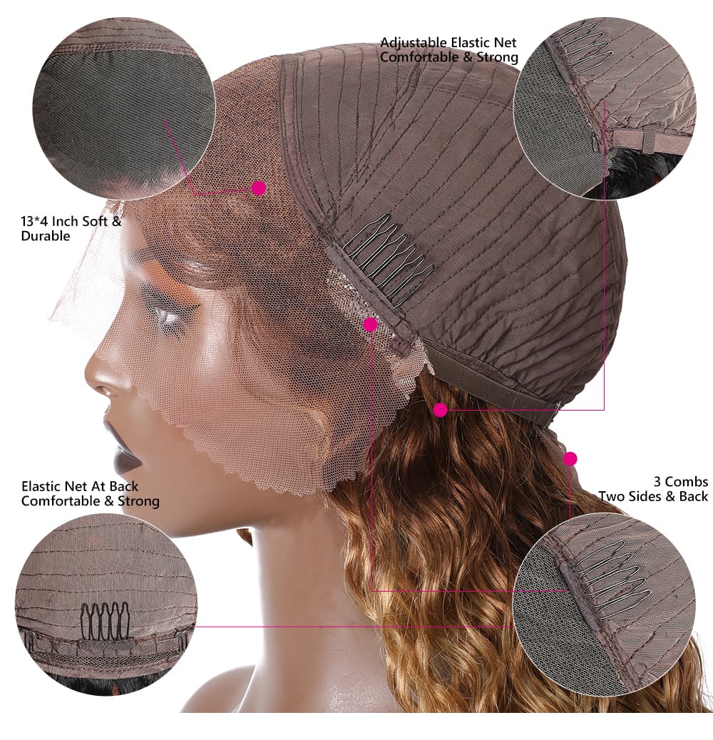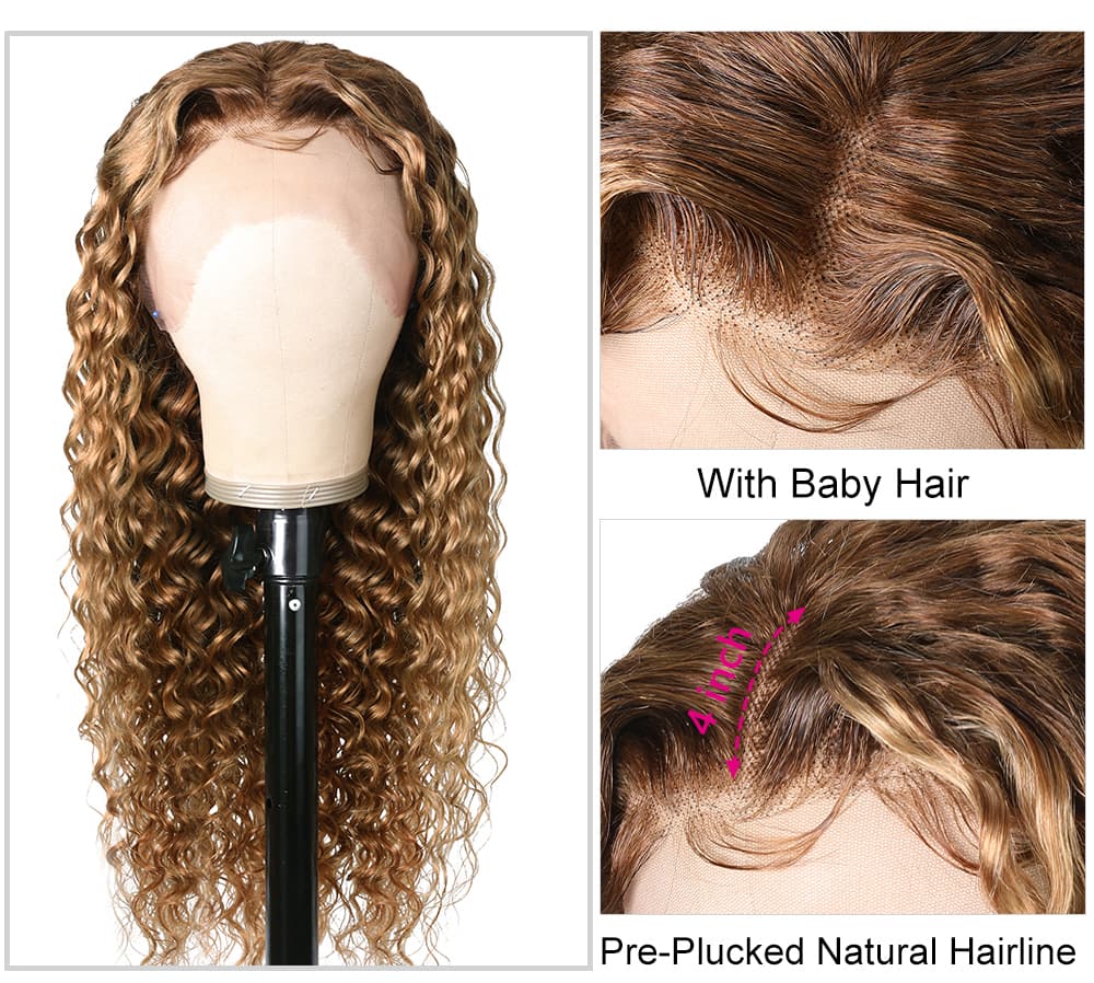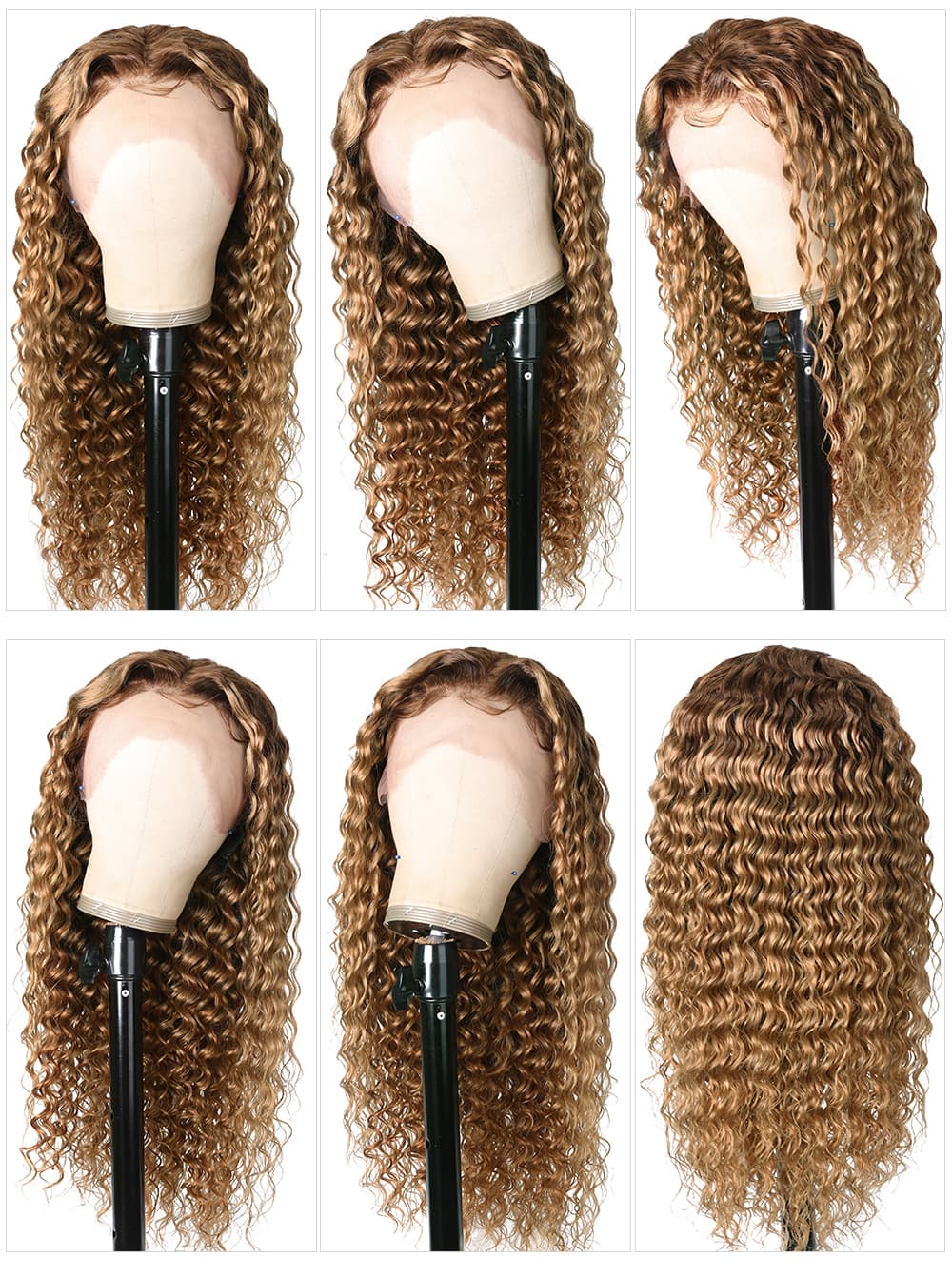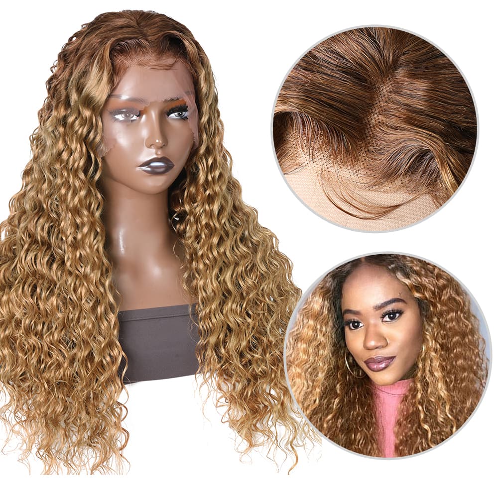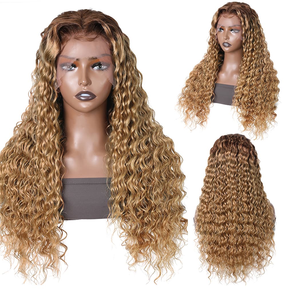 Incolorwig Honey Blonde 13x4 Pre Plucked Deep Wave Ombre Colored Lace Frontal Wig For Women