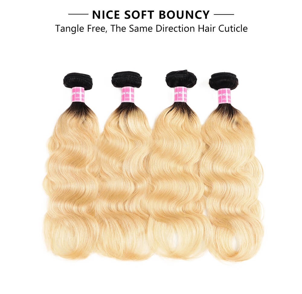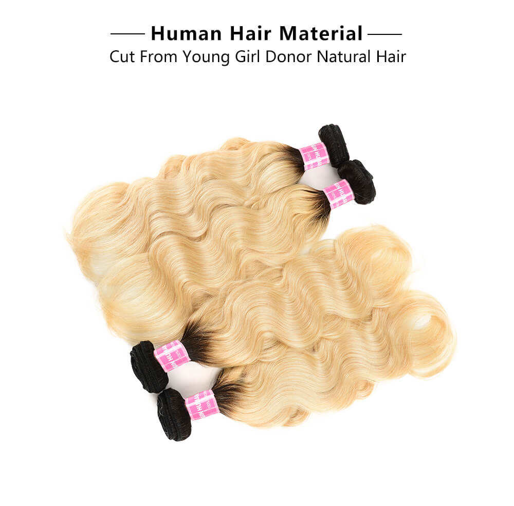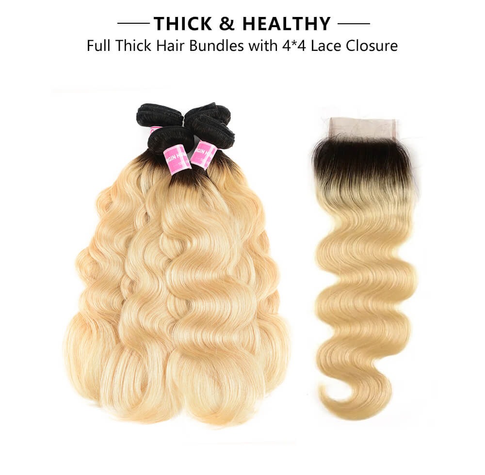 Incolorwig Indian Human Hair New Arrival #T1B613 Ombre Color Body Wave 4 Bundles Hair With 4*4 Free Part Lace Closure