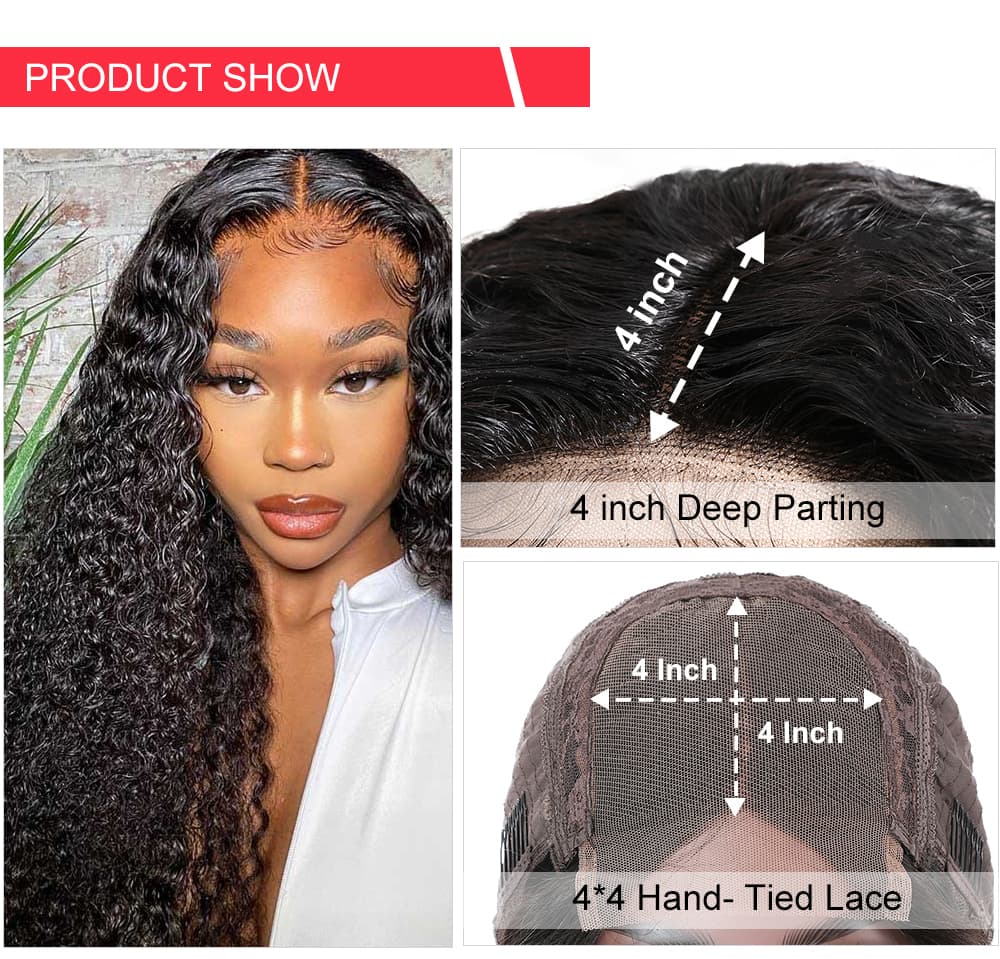 Incolorwig Jerry Curly Glueless Lace Wigs Human Hair 4x4 Lace Closure Wig 14- 24 Inch Unprocessed Human Hair Wig Pre Plucked For Women Tangle Free