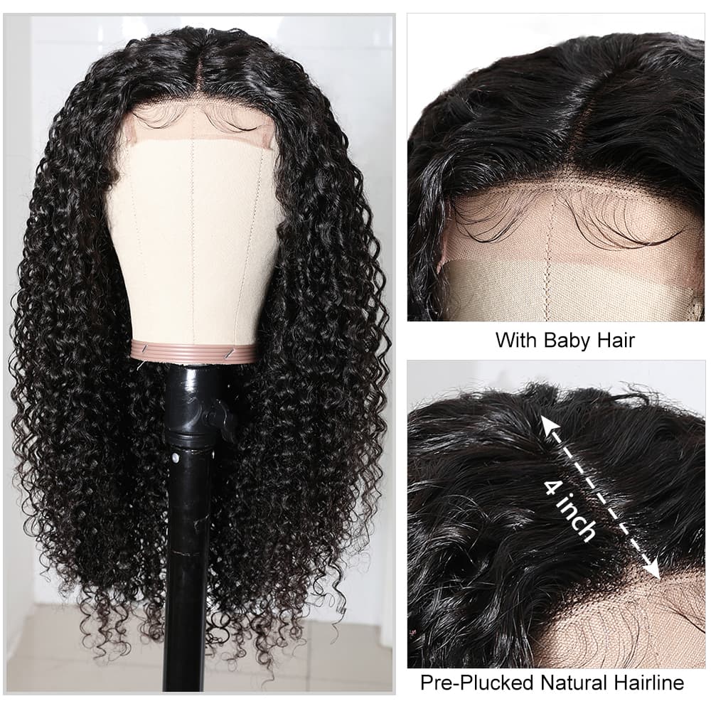 Incolorwig Jerry Curly 4x4 Lace Closure Wigs Human Virgin Hair Pre Plucked Natural Hairline 150% Density