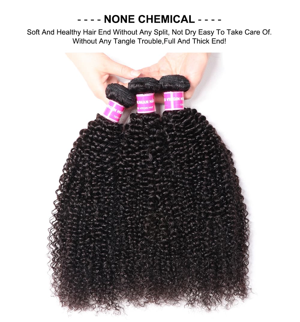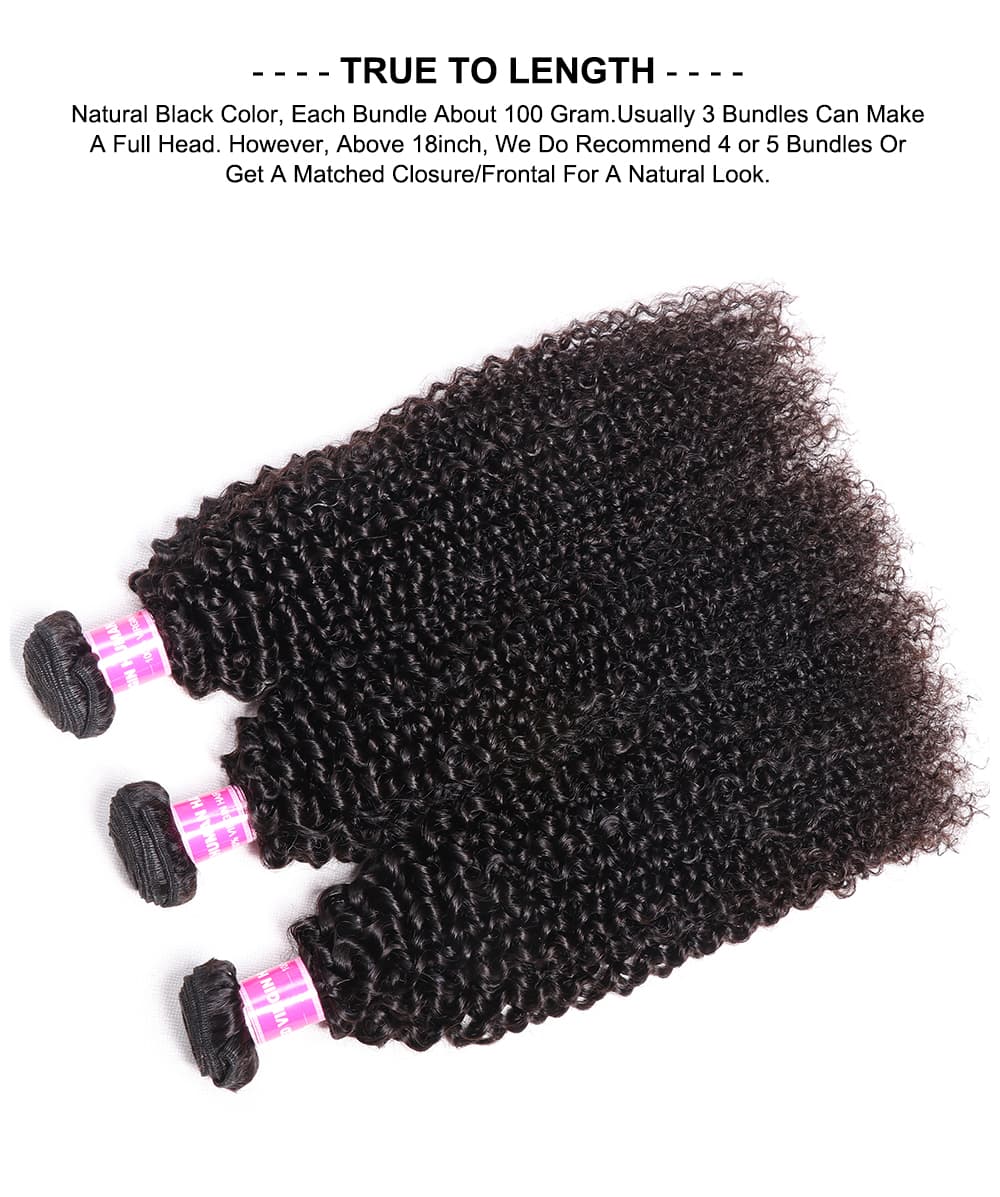 Incolorwig Kinky Curly Hair Weave 3 Bundles Brazilian Virgin Hair Natural Color