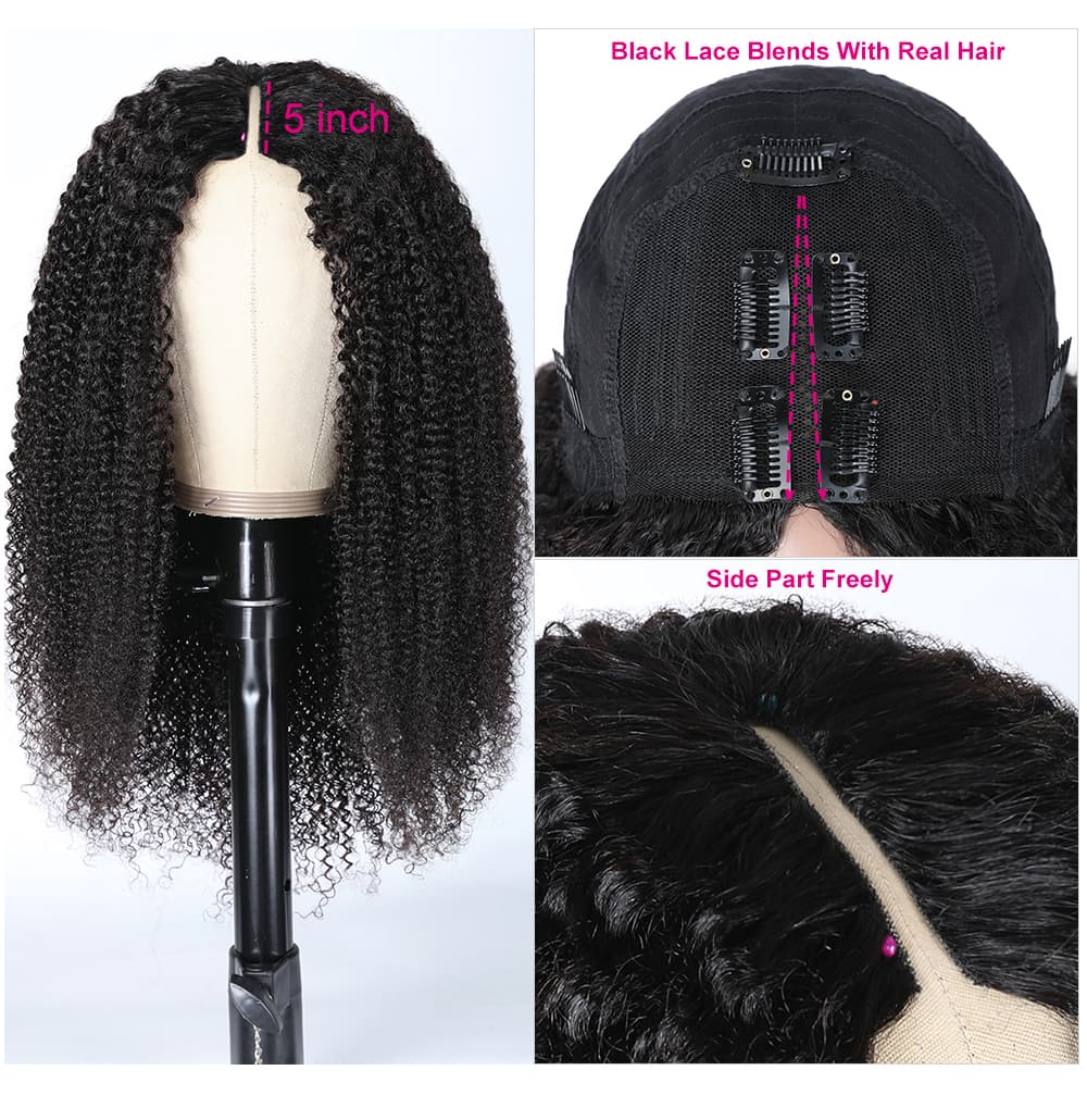 Incolorwig Kinky Curly V Part Human Hair Wigs Beginner Friendly Upgrade U Part Human Hair Wigs