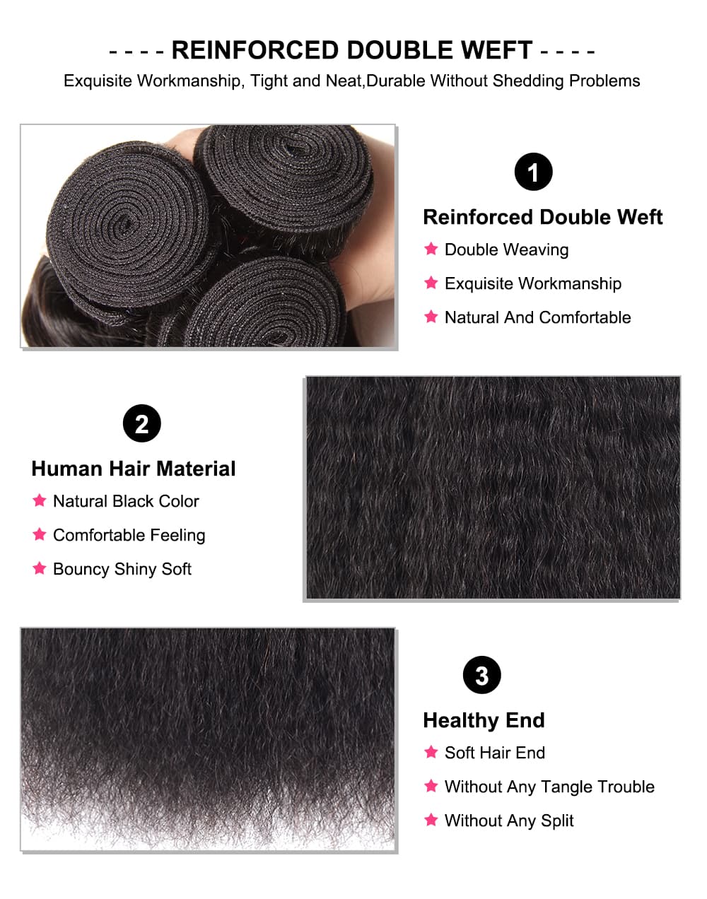 Incolorwig Kinky Straight Hair Bundles 3 Bundles 8-26 Inch 100% Human Hair Extensions Fast Shipping
