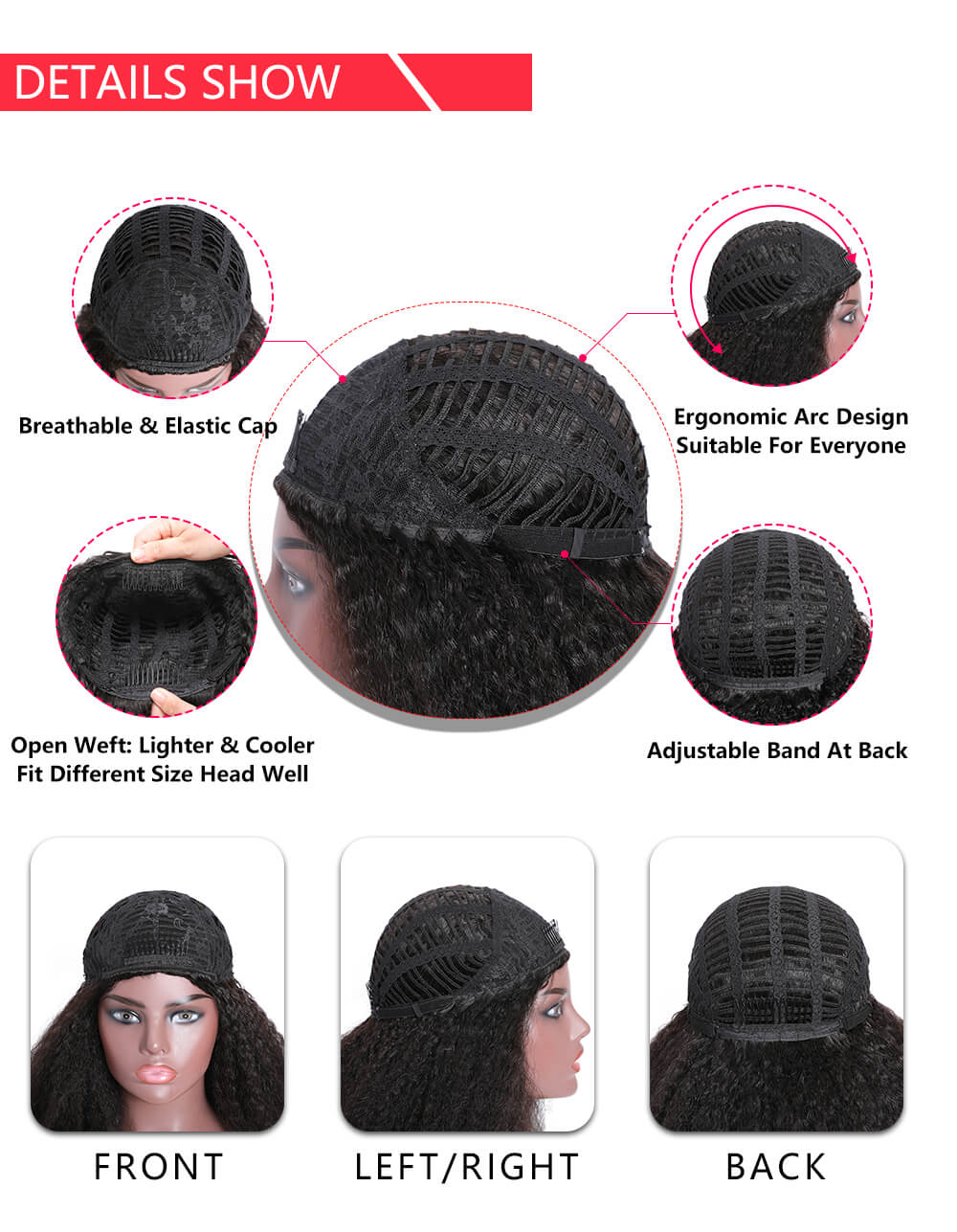| Meta Keywords | Kinky Straight Human Hair Wigs, 150% Density Glueless Wigs, Kinky Straight 3/4 Half Wig |