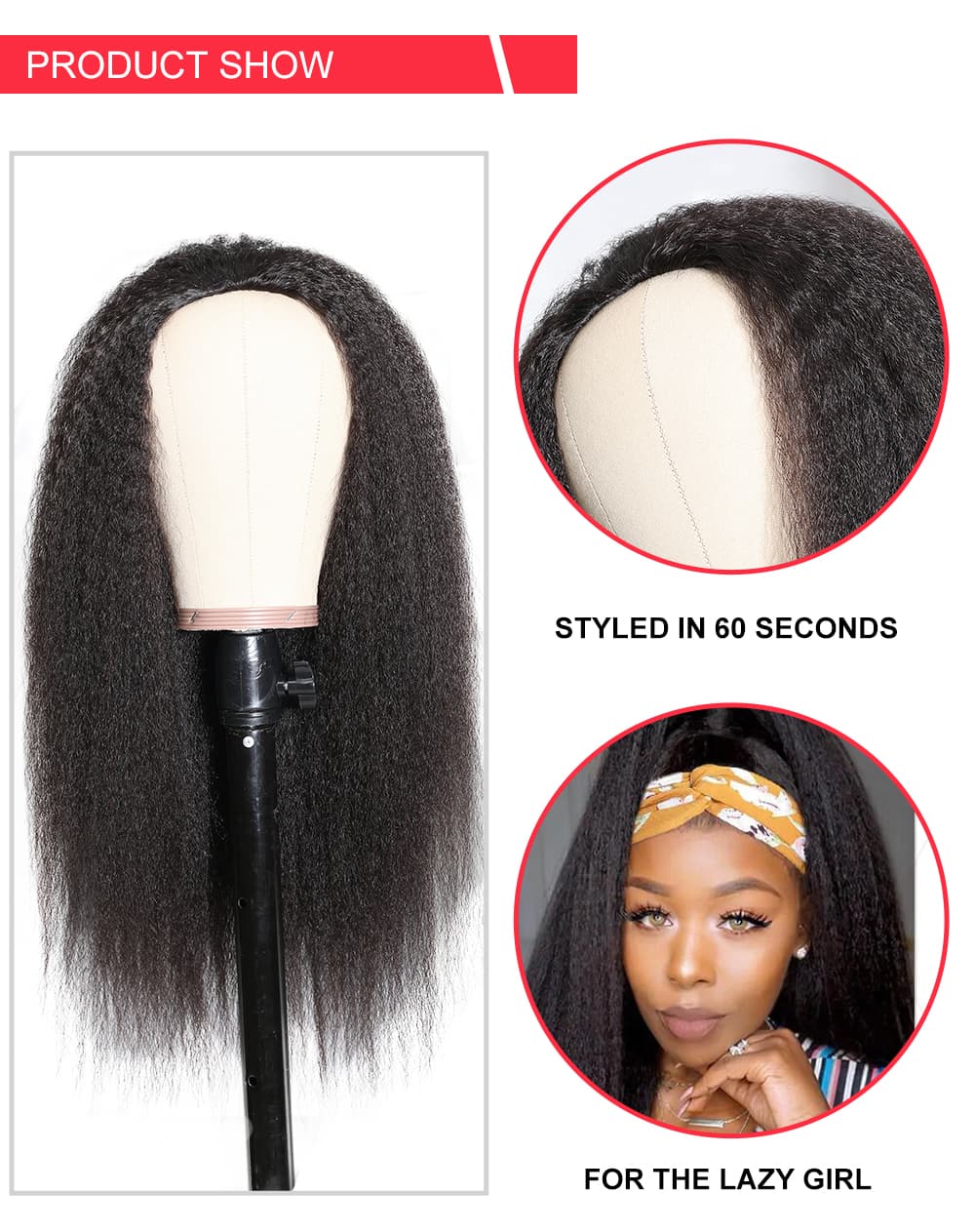 Incolorwig Affordable Best Kinky Straight Hair Human Hair Half Wigs 150% Density Human Hair Long Wigs 12-28 Inch Half Wig With Random Gift Headband