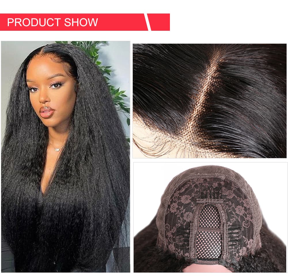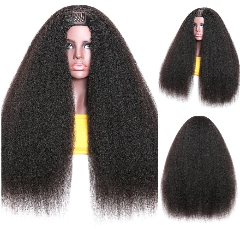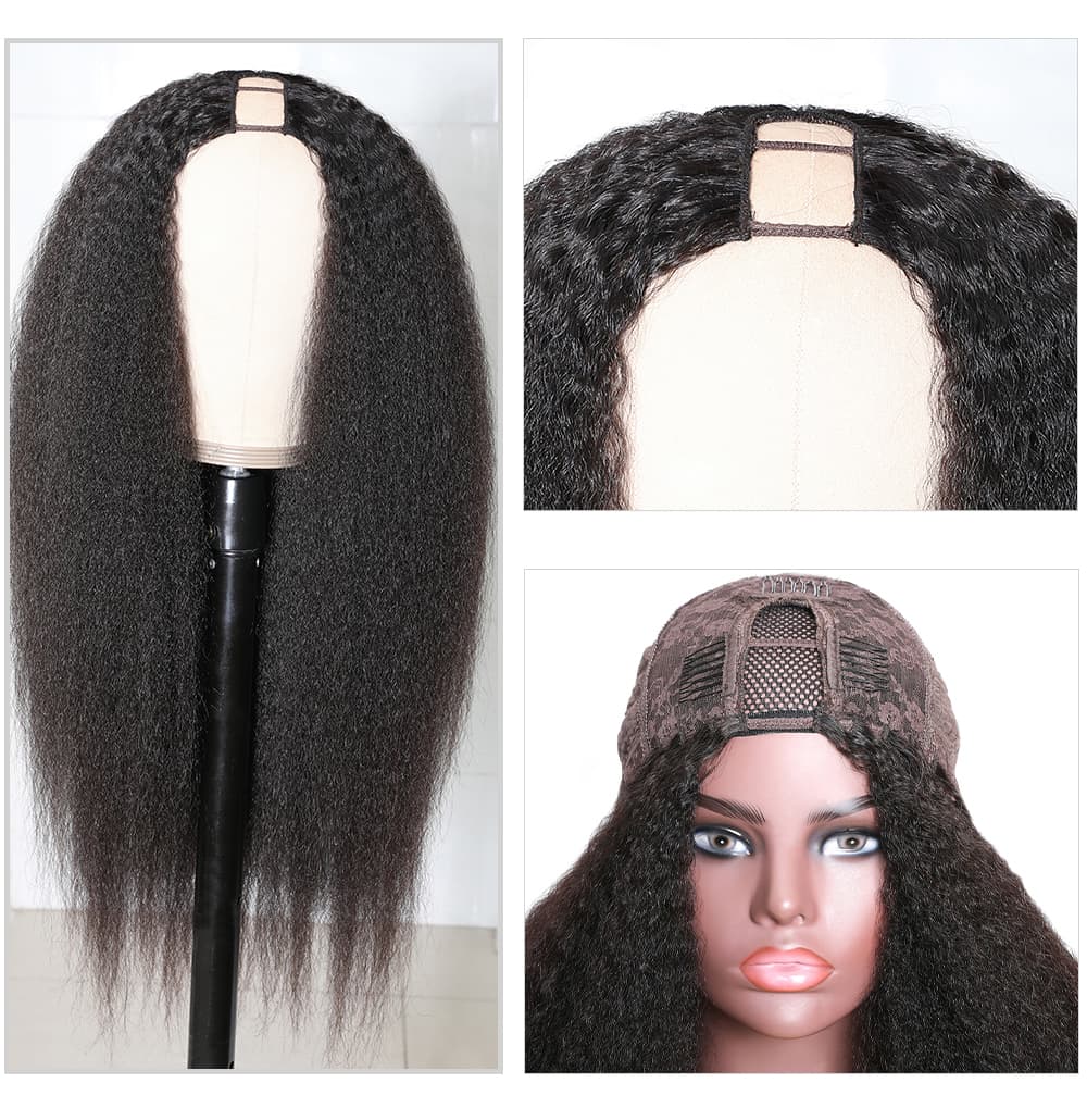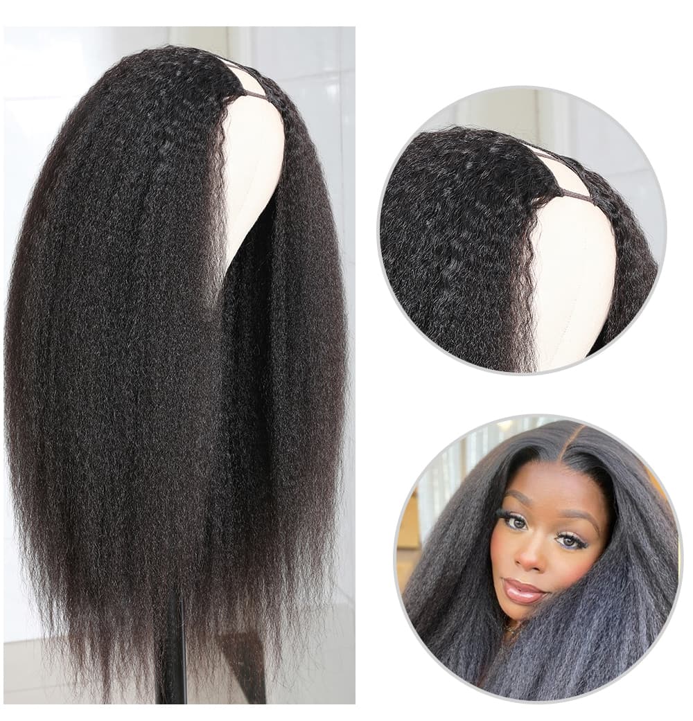 Incolorwig Kinky Straight U Part Wigs Natural Color Human Hair Wig Glueless Remy Yaki Straight Wig