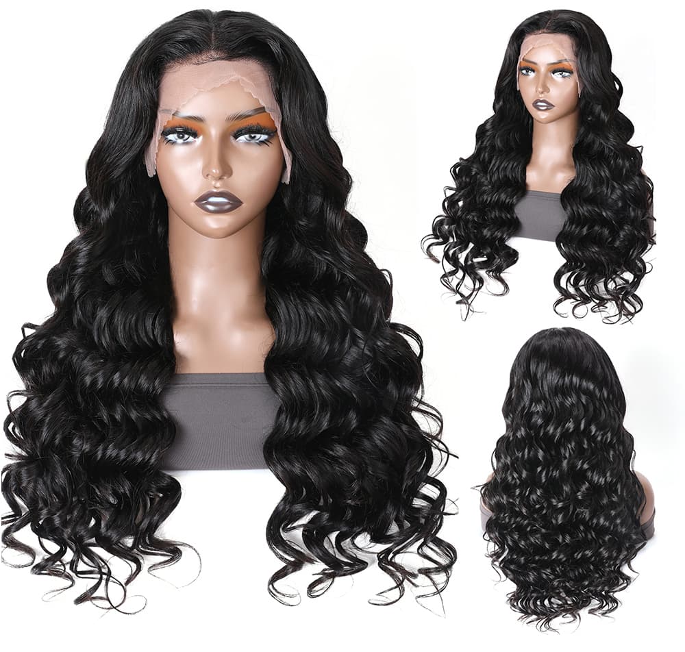Incolorwig Loose Wave Long Wig Natural Black 13x4 Lace Front Wig Pre Plucked With Baby Hair For Women