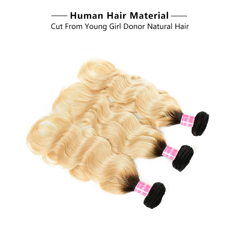 Incolorwig Malysian Human Hair 3 Bundles With 13*4 Lace Frontal, Novel Color #T1B613 & Body Wave Remy Hair For Women In Stock