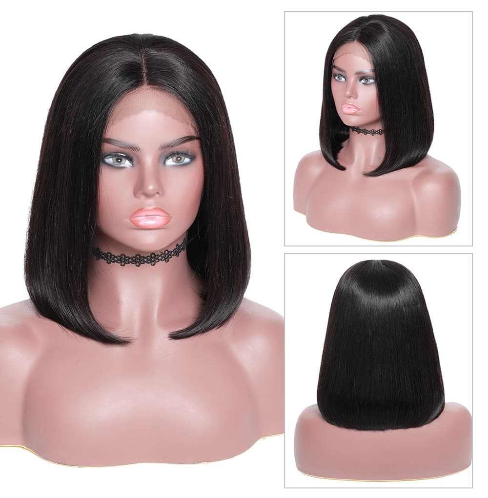 Incolorwig 100% Unprocessed Virgin Human Hair Bob Wigs Best Human Hair Natural Black 13*4 Lace Frontal Cut Bob Wig Pre-plucked Natural Hairline