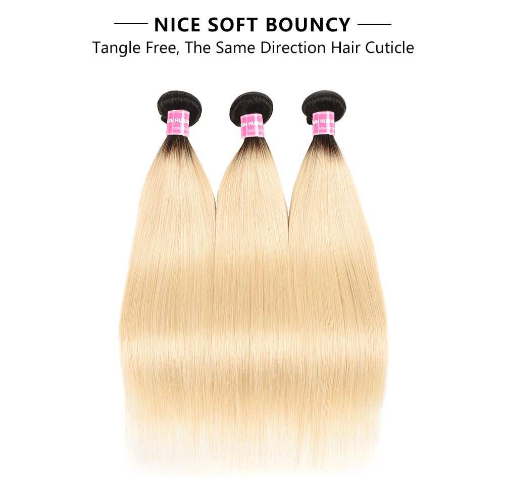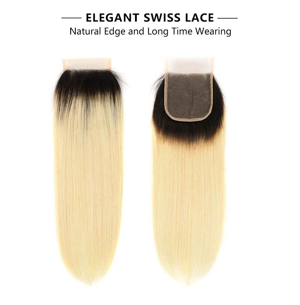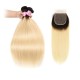 Incolorwig New Arrival Peruvian Human Hair Combination #T1B613 Ombre Blonde Straight Hair 3 Bundles With 4*4 Lace Closure