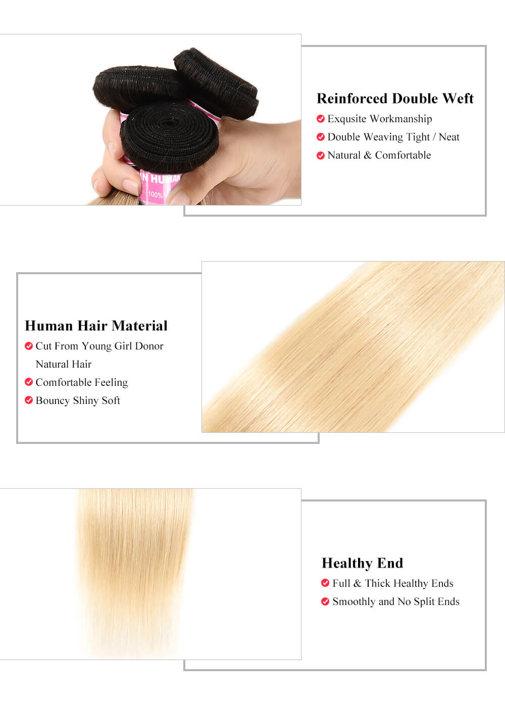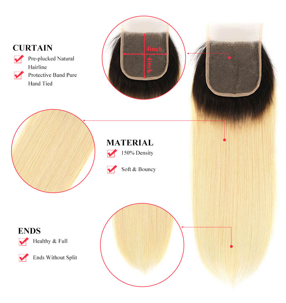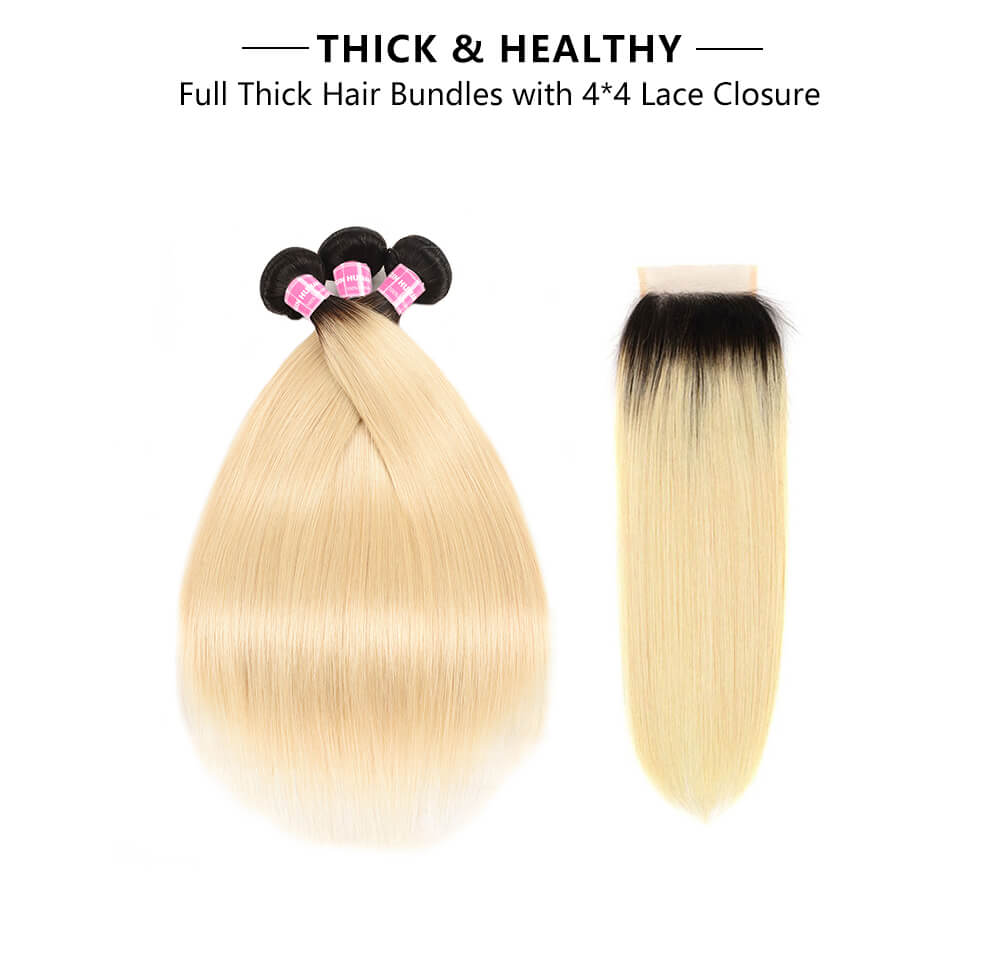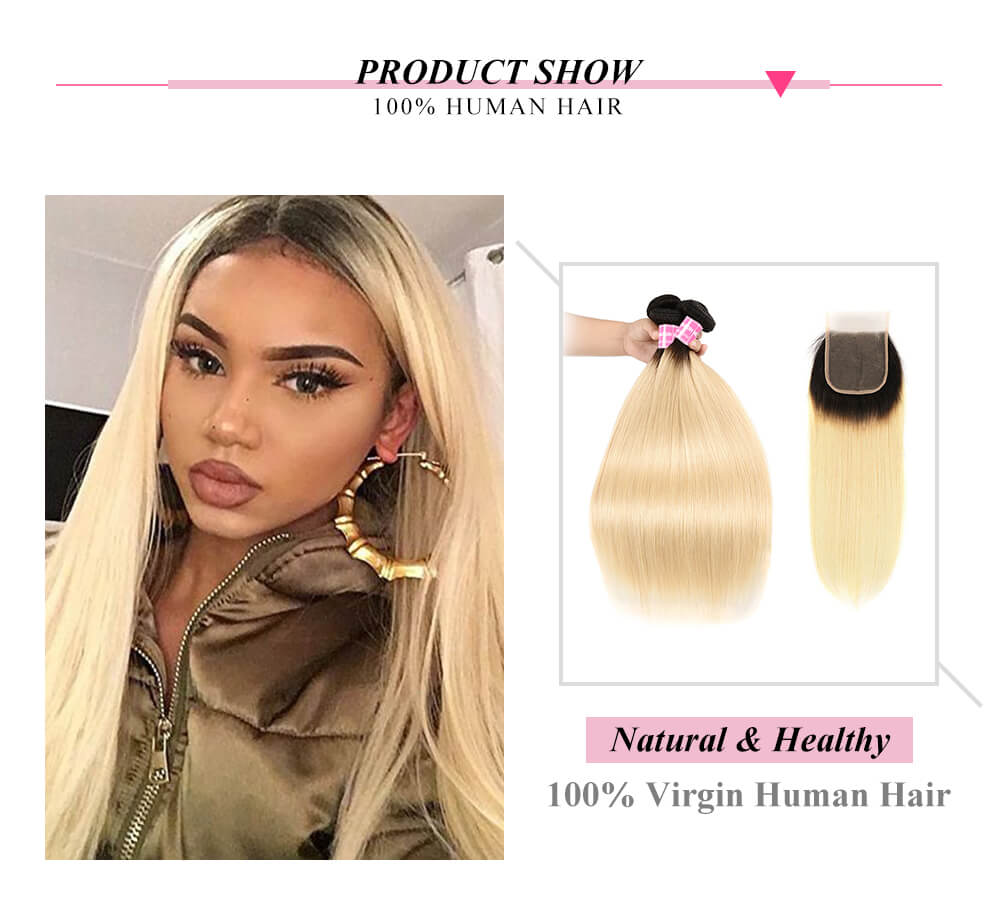 | Meta Keywords | Virgin Human Hair, Peruvian Hair, #T1B613 Ombre Blonde Straight 3 Bundles Hair Wiht 4*4 Lace Closure |