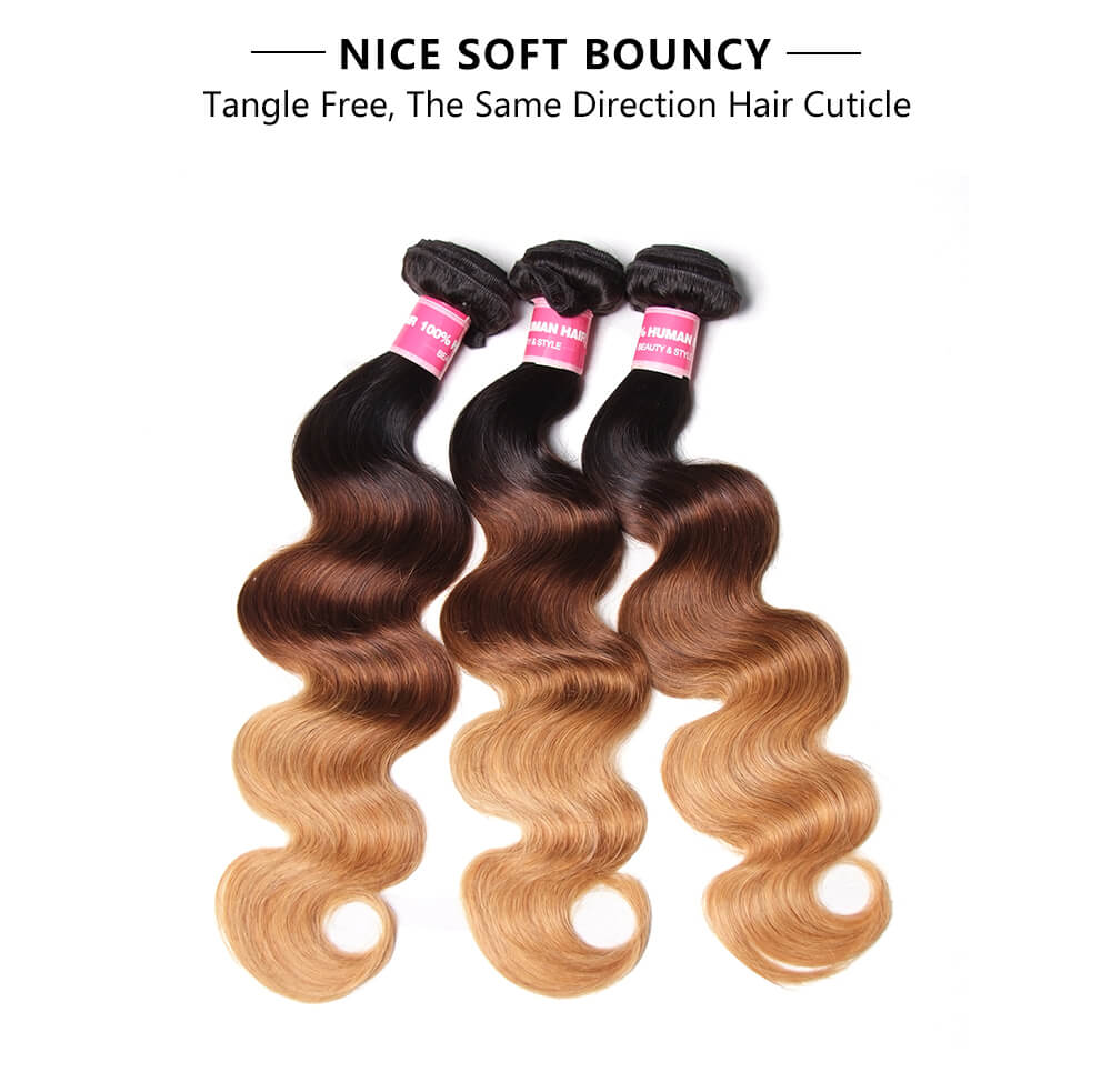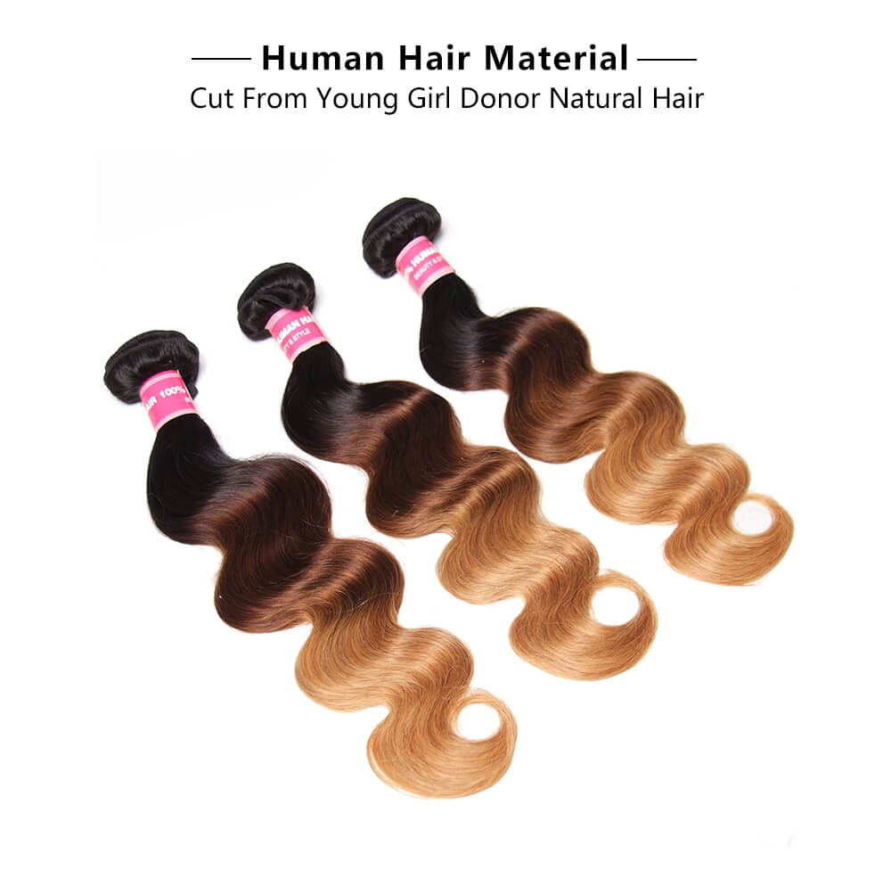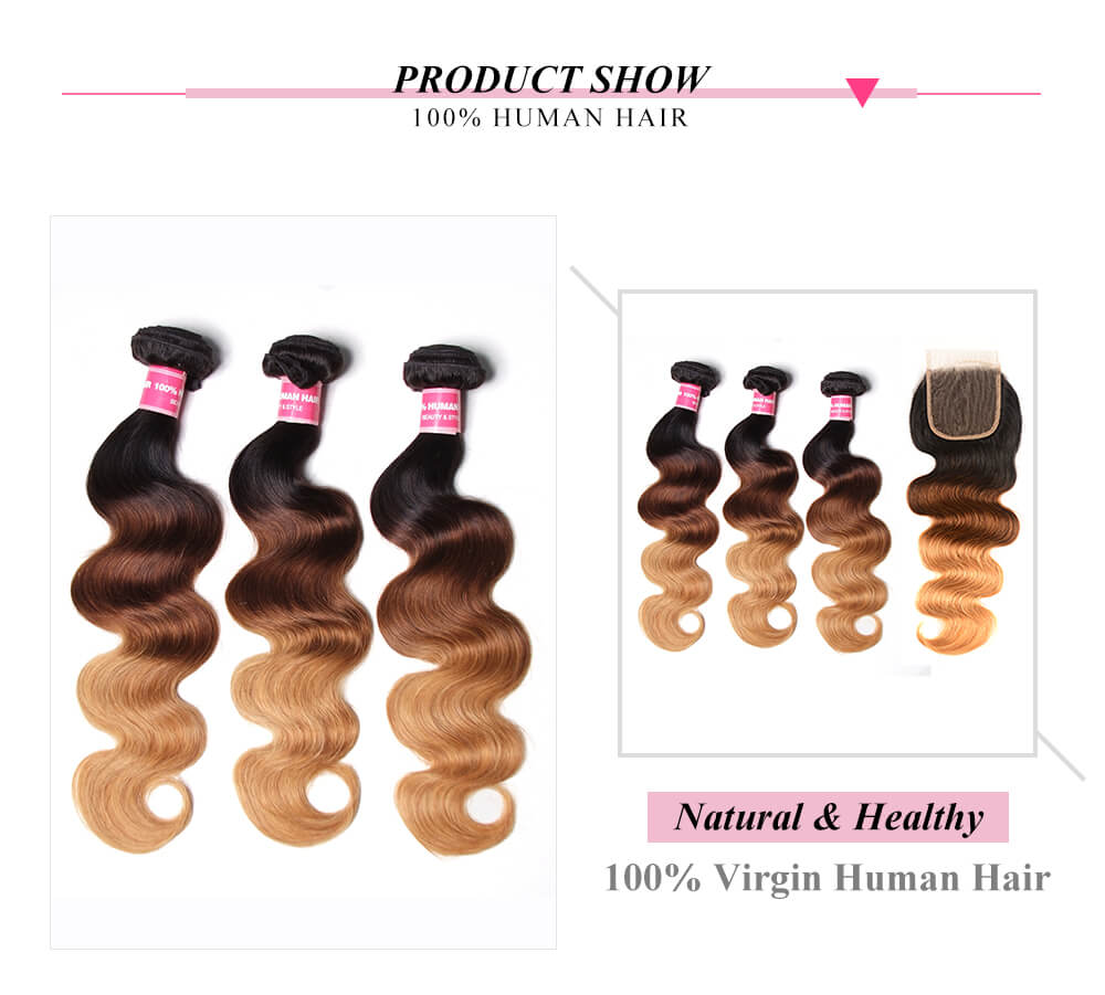Incolorwig New Arrival #T1B427 Ombre Body Wave Ombre Color 3 Bundles With 4*4 Lace Closure Free Part