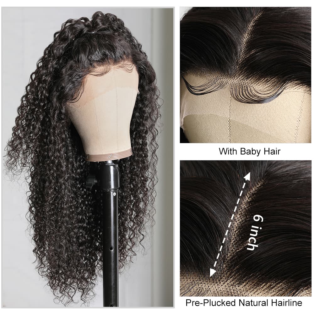 Incolorwig Jerry Curly Lace Front Wig With Baby Hair Natural Black 13x6 Lace Frontal Cap 100% Human Hair 150% Density Realistic Human Hair Wigs