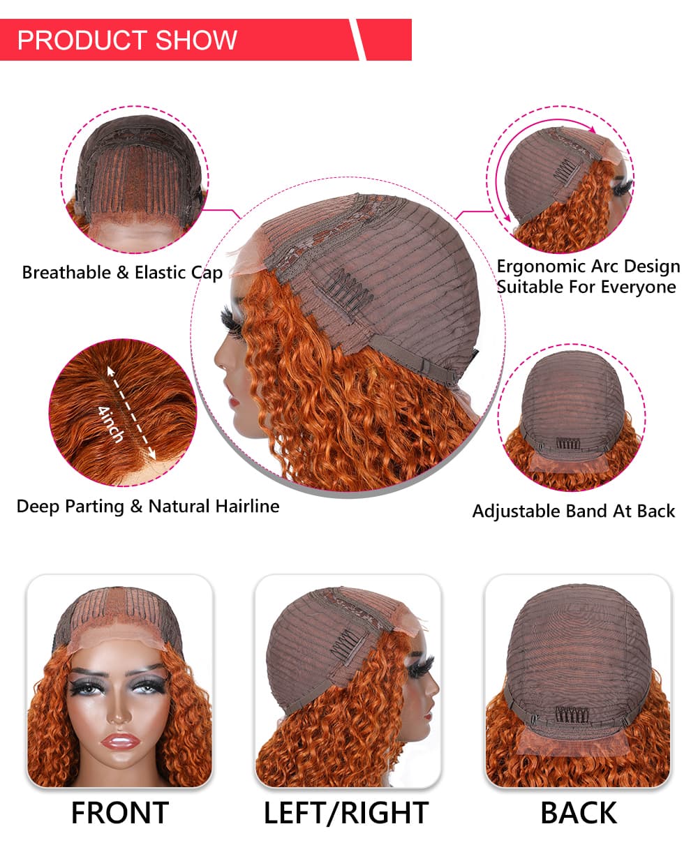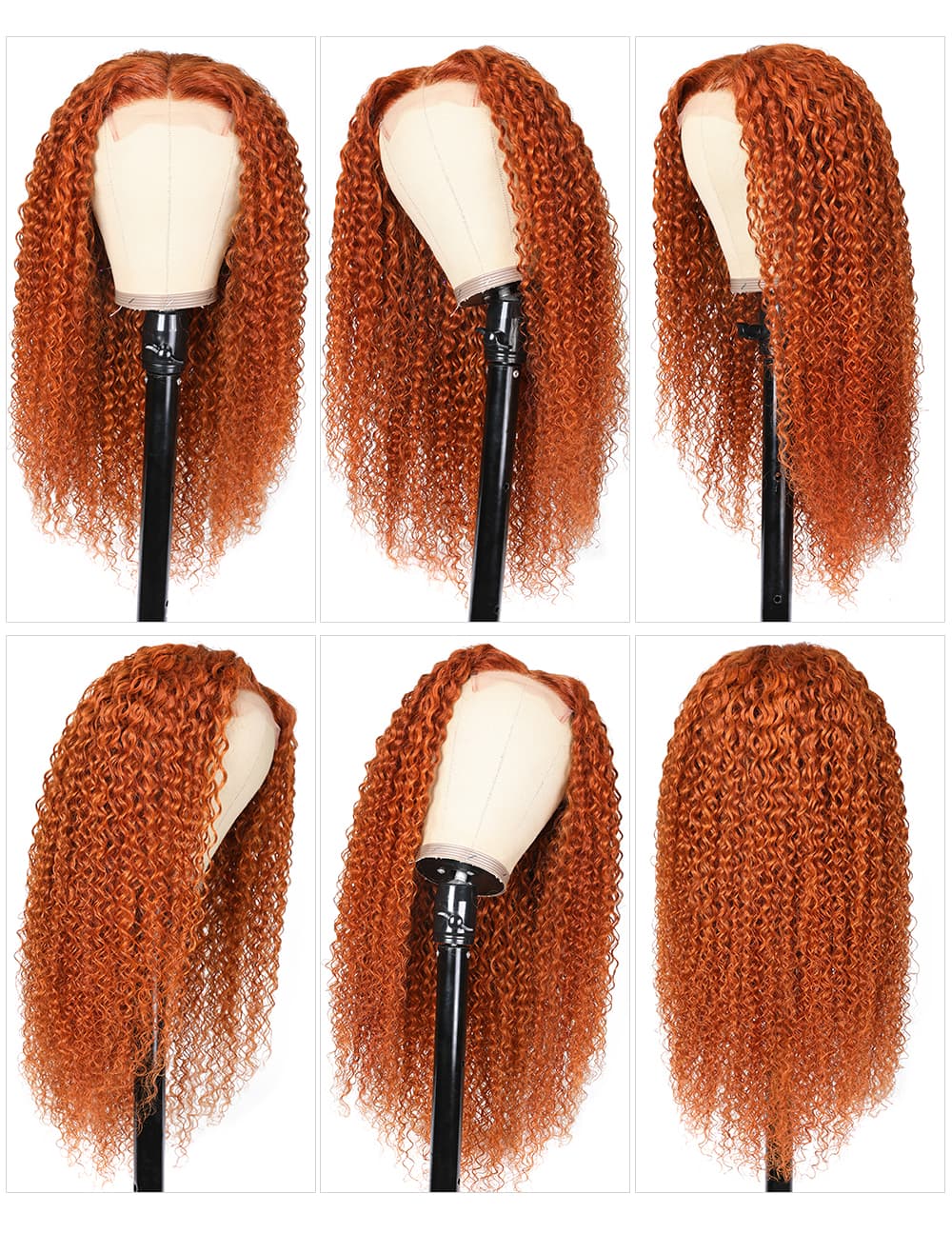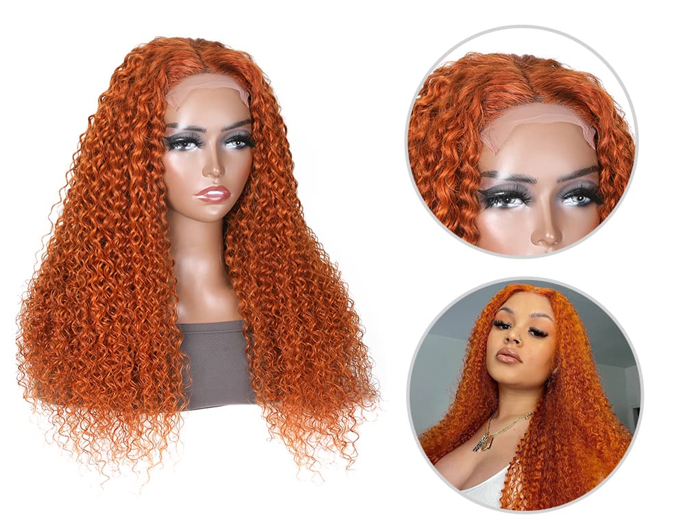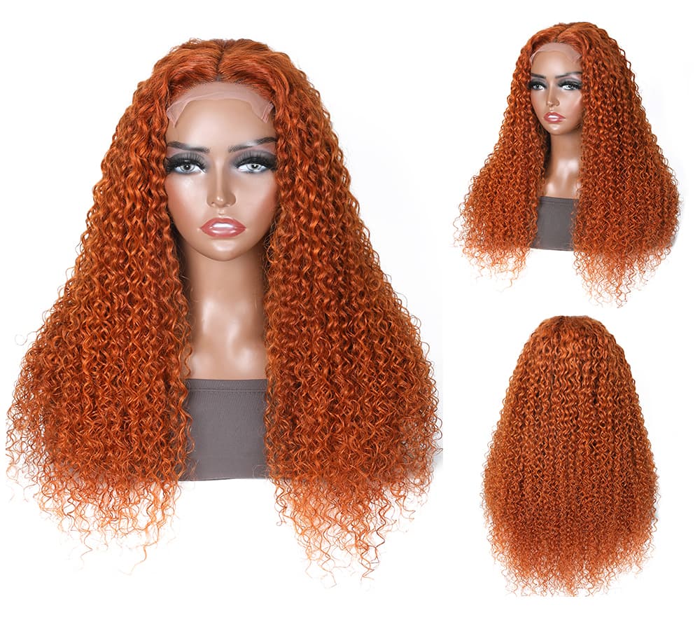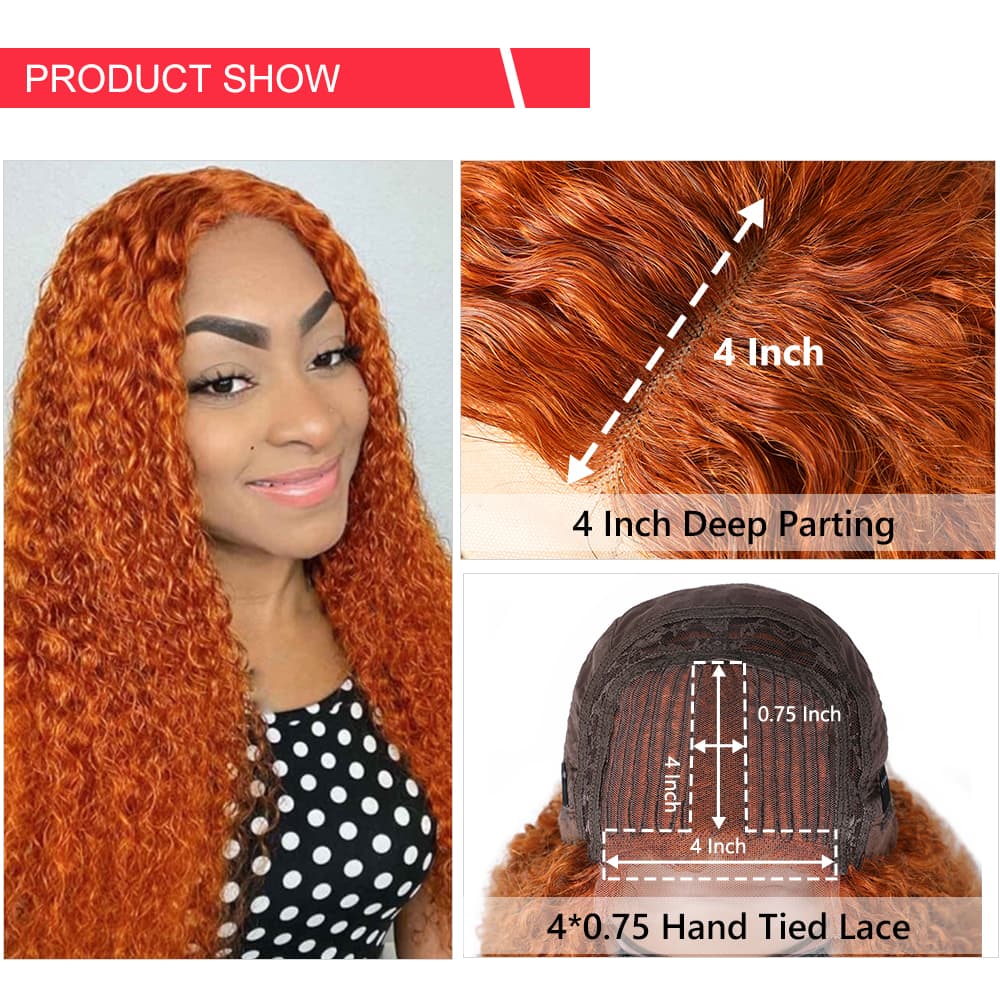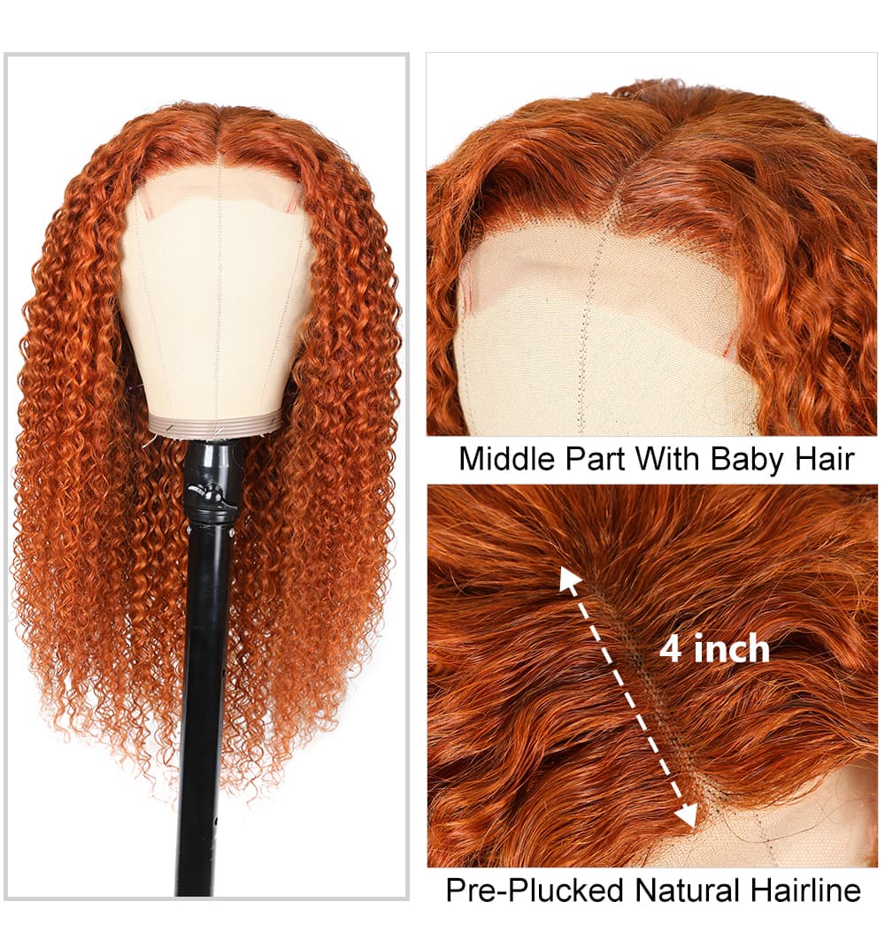 Incolorwig Ginger Orange Colored Curly Wigs Best Human Hair 4*0.75 Lace Part Wig 16-24 Inch Pre-plucked Long Wigs Affordable Jerry Curly Lace Wigs For Sale